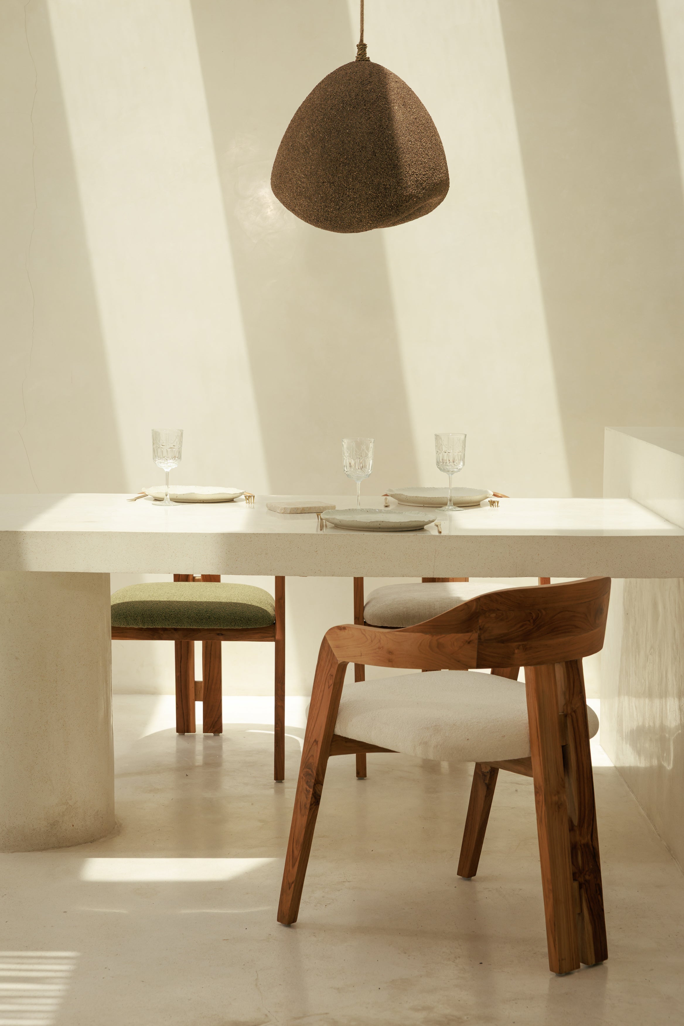 La chaise Ataya blanche associe un textile lumineux, doux et dense au toucher à la chaleur du bois de teck massif. L’assise rembourrée offre un confort équilibré, à la fois accueillant et structuré, idéal pour accompagner les repas comme les moments de travail. La structure en teck poli révèle des veines naturelles et une finition lisse qui apportent une sensation de solidité et de qualité durable. Une pièce iconique de la sélection Design Trip, pensée pour sublimer l’espace tout en restant profondément confortable.