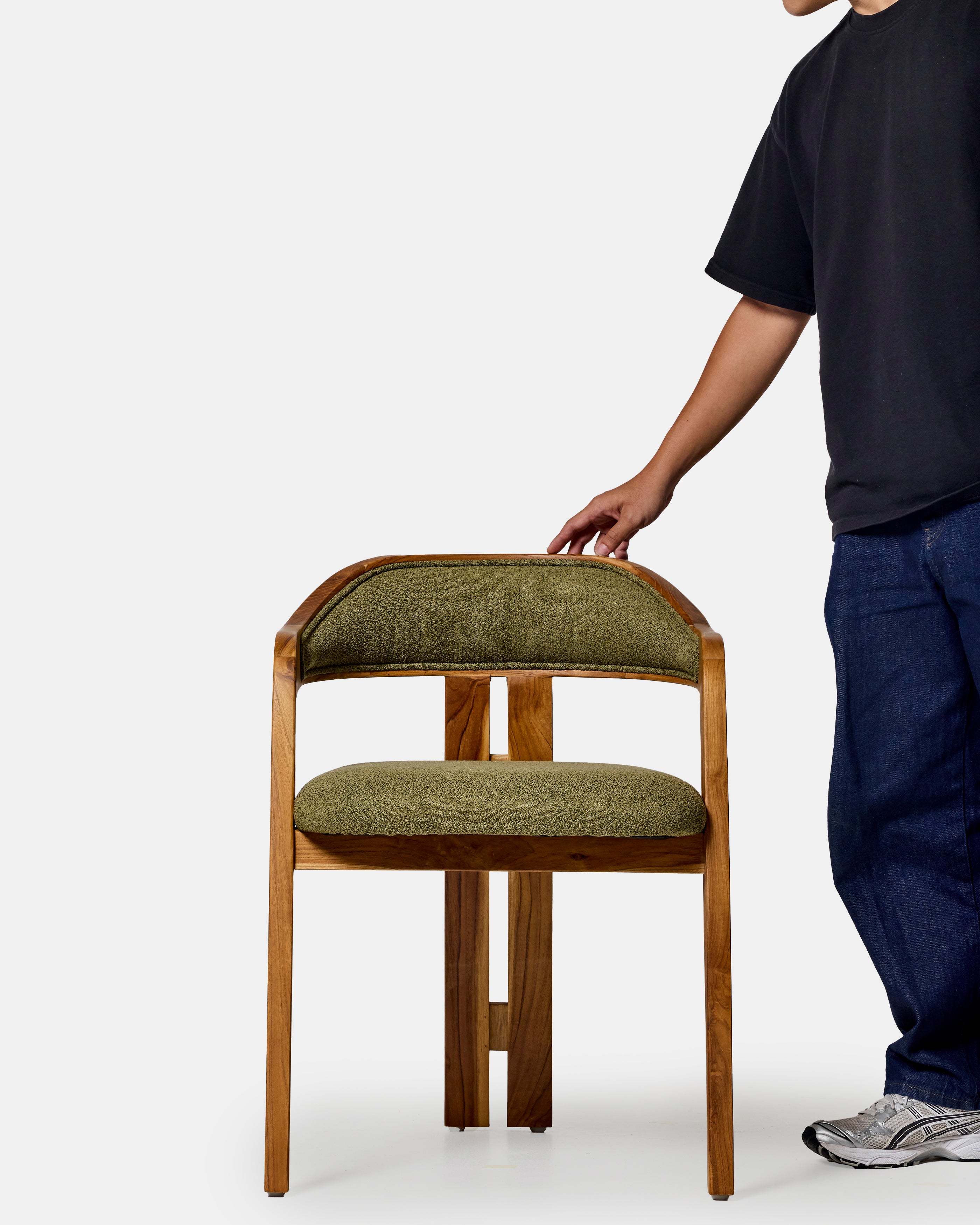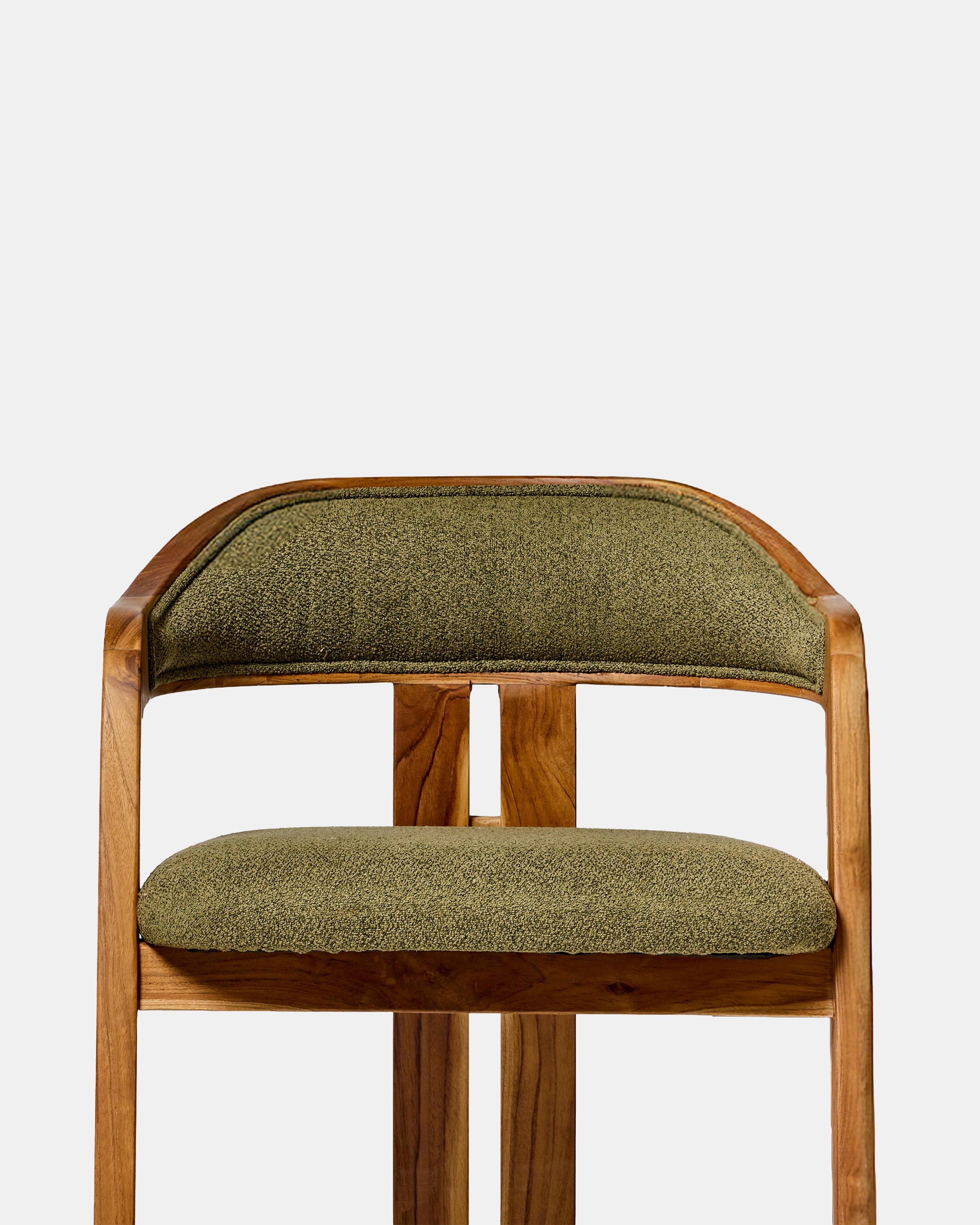 La chaise Ataya verte associe un textile profond, dense et doux au toucher à la noblesse du bois de teck massif. L’assise rembourrée enveloppe le corps avec confort et tenue, idéale pour accompagner les repas qui s’étirent ou les moments de travail autour de la table. La structure en teck poli révèle des veines naturelles et une finition lisse qui apportent une sensation de solidité et de qualité durable. Une pièce emblématique de la sélection Design Trip, pensée pour être utilisée au quotidien tout en affirmant la beauté de la matière.