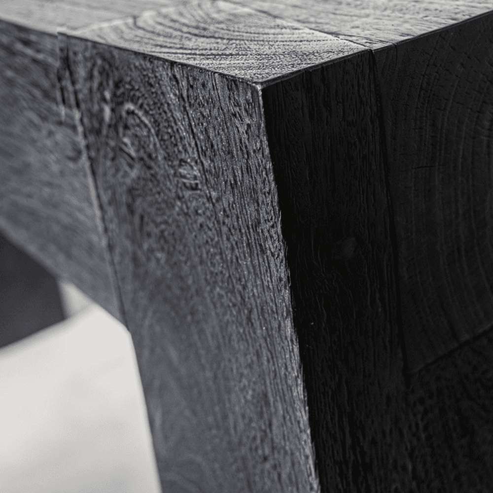 La console Padi en bois de teck noir dessine une allure élégante et contemporaine qui donne immédiatement du caractère à l’espace. Sa silhouette épurée et sa finition profonde créent un contraste subtil entre modernité et chaleur naturelle, idéale pour structurer une entrée, un salon ou un bureau. Le teck révèle sous sa teinte noire de légères nuances qui apportent de la matière et de la profondeur visuelle, tandis que ses lignes sobres laissent toute la place aux objets que l’on choisit d’y exposer. Posée contre un mur, la console Padi devient un point d’équilibre raffiné, pensé pour sublimer le quotidien avec discrétion et style.