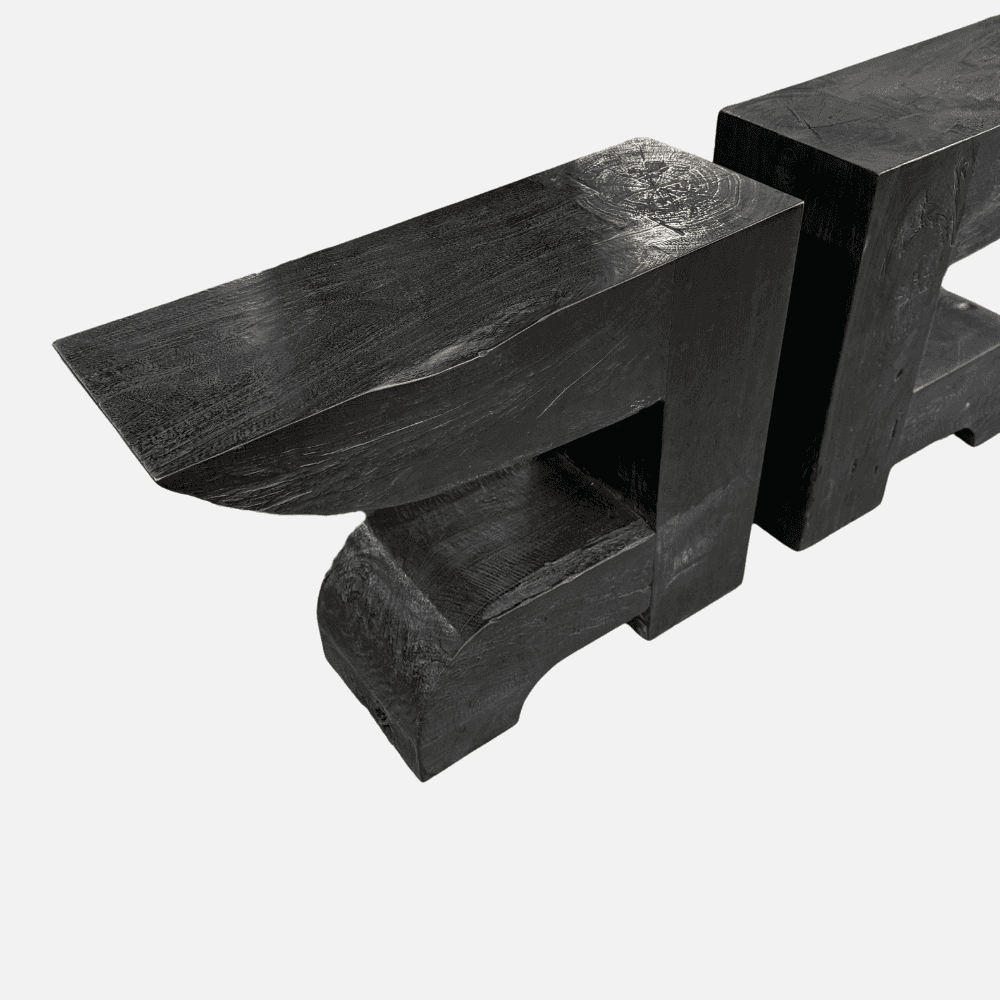 La console Surya en bois de manguier noir affirme son caractère par un jeu de formes géométriques qui capte immédiatement le regard. Sa silhouette graphique apporte une dimension artistique à l’espace, comme une sculpture fonctionnelle pensée pour structurer l’intérieur avec élégance. Dans une entrée, un salon ou un espace créatif, elle installe une atmosphère contemporaine et audacieuse, tout en conservant la chaleur du bois. Posée seule ou disposée en symétrie, la console Surya permet de composer un décor rythmé et équilibré, où le design devient une véritable signature visuelle.