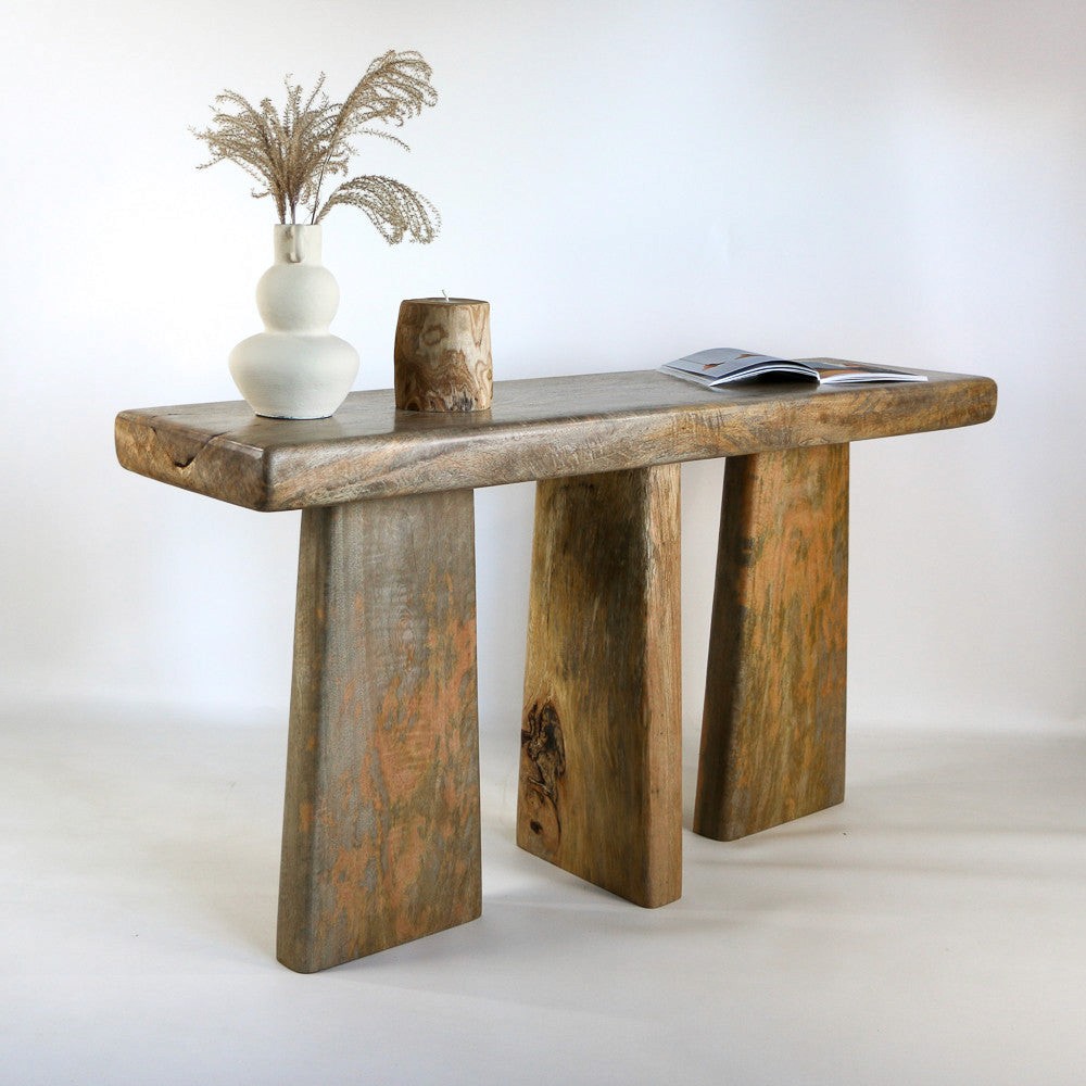 Console Wira en bois de manguier massif. Dimensions 150x40x80 cm, design naturel et contemporain. Parfaite pour entrée ou salon, robustesse et style intemporel.