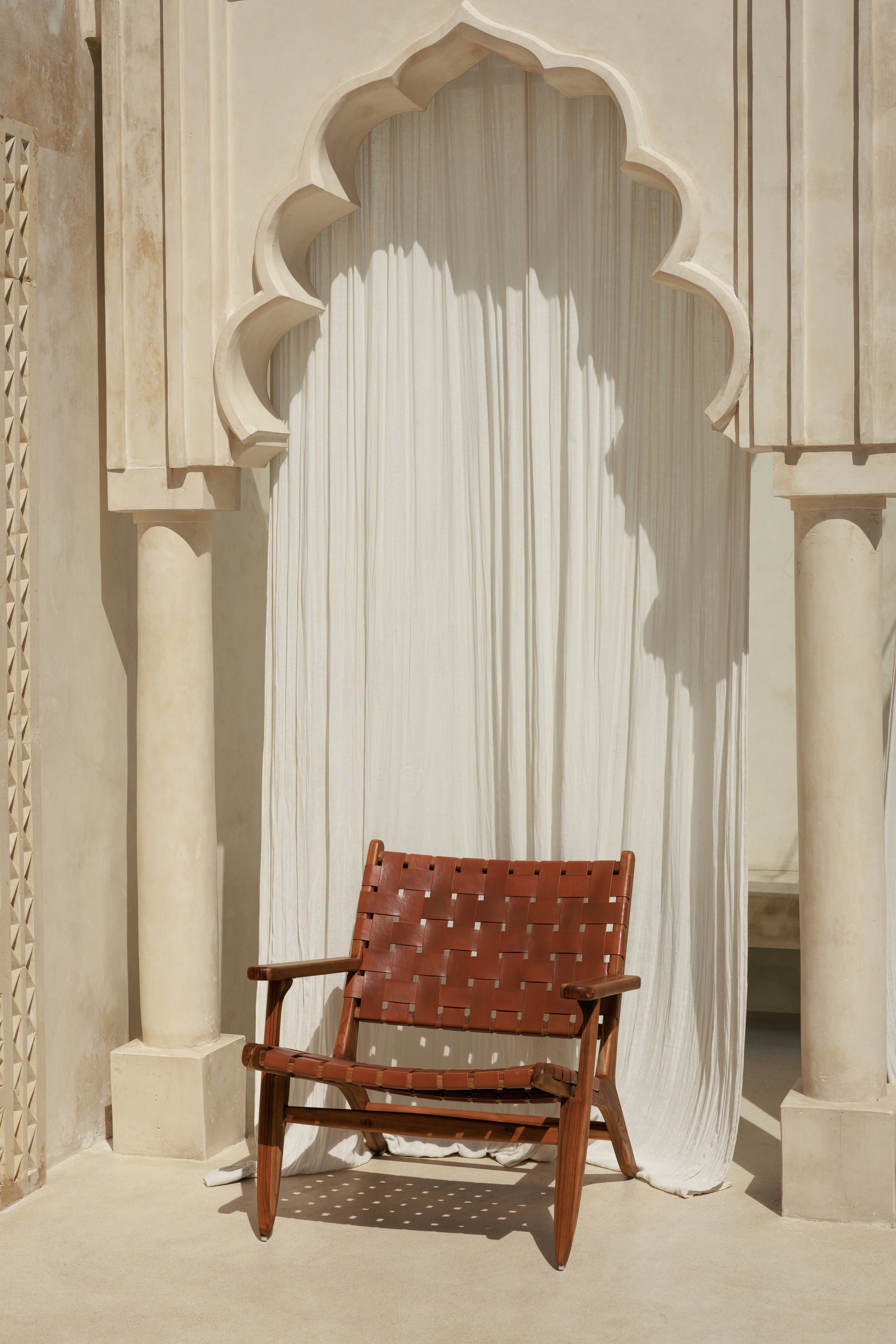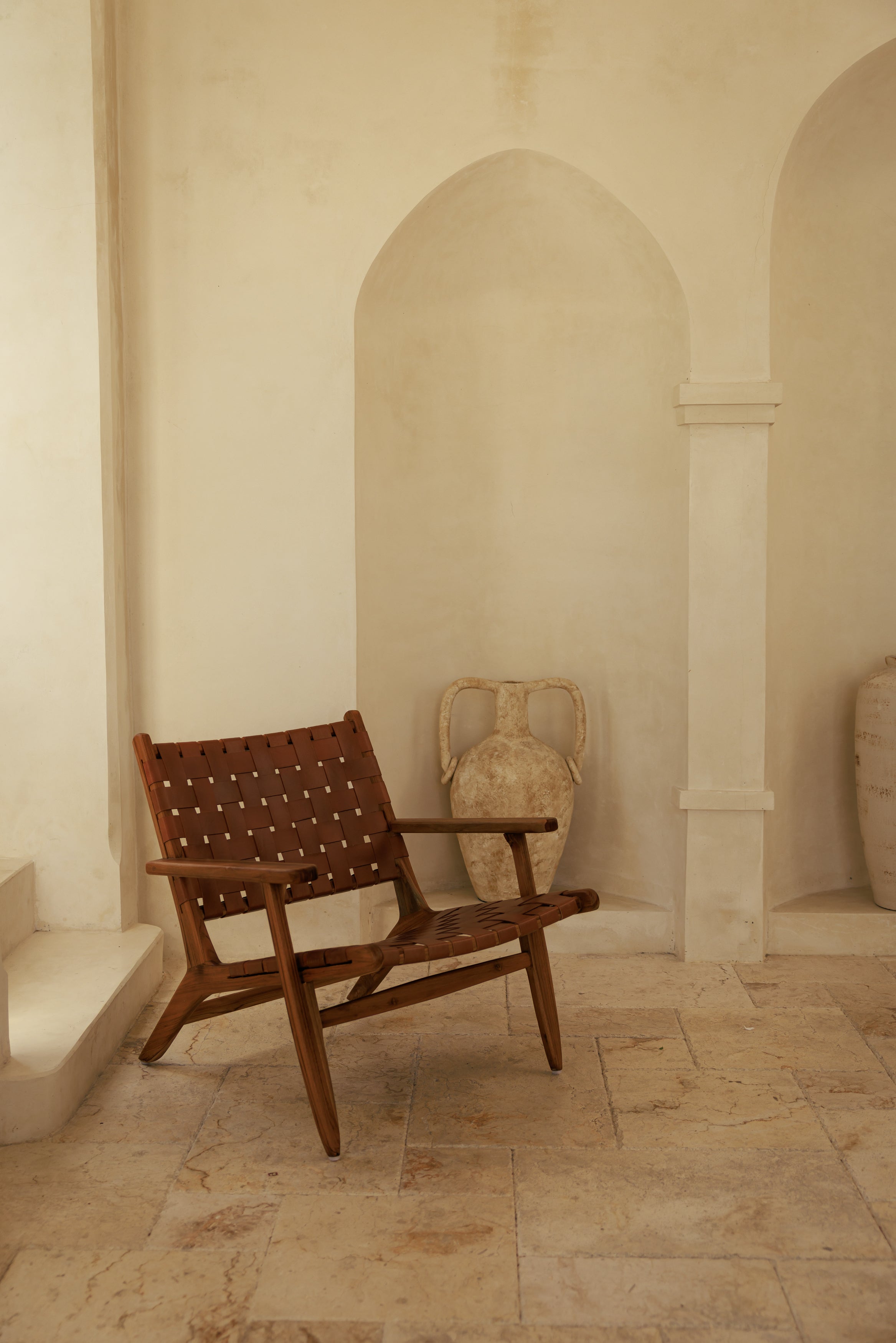 Le fauteuil Relax en teck massif et cuir tressé marron affirme un équilibre juste entre artisanat et design intemporel. Sa structure en teck révèle une matière dense et chaleureuse, choisie pour sa solidité et sa capacité à traverser le temps, tandis que le cuir tressé à la main compose une assise souple, confortable et visuellement élégante. Chaque détail traduit le geste précis de l’artisan, donnant naissance à une pièce au caractère singulier. Installé dans un salon contemporain, un bureau ou une bibliothèque, le fauteuil Relax crée une atmosphère posée et raffinée, où les matières naturelles dialoguent avec des lignes sobres pour accompagner le quotidien avec authenticité et confort.