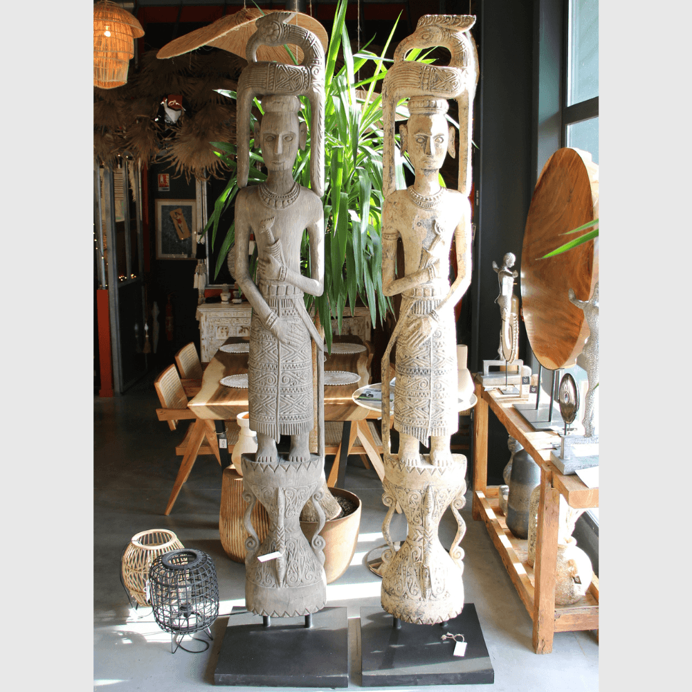 Sculptée à la main, la Grande statue primitive de l'île de Timor 2 est une statue en bois qui apporte un accent artisanal à la décoration. Sa ligne verticale et son caractère brut trouvent naturellement leur place sur une console, une étagère ou au sol dans une mise en scène épurée.