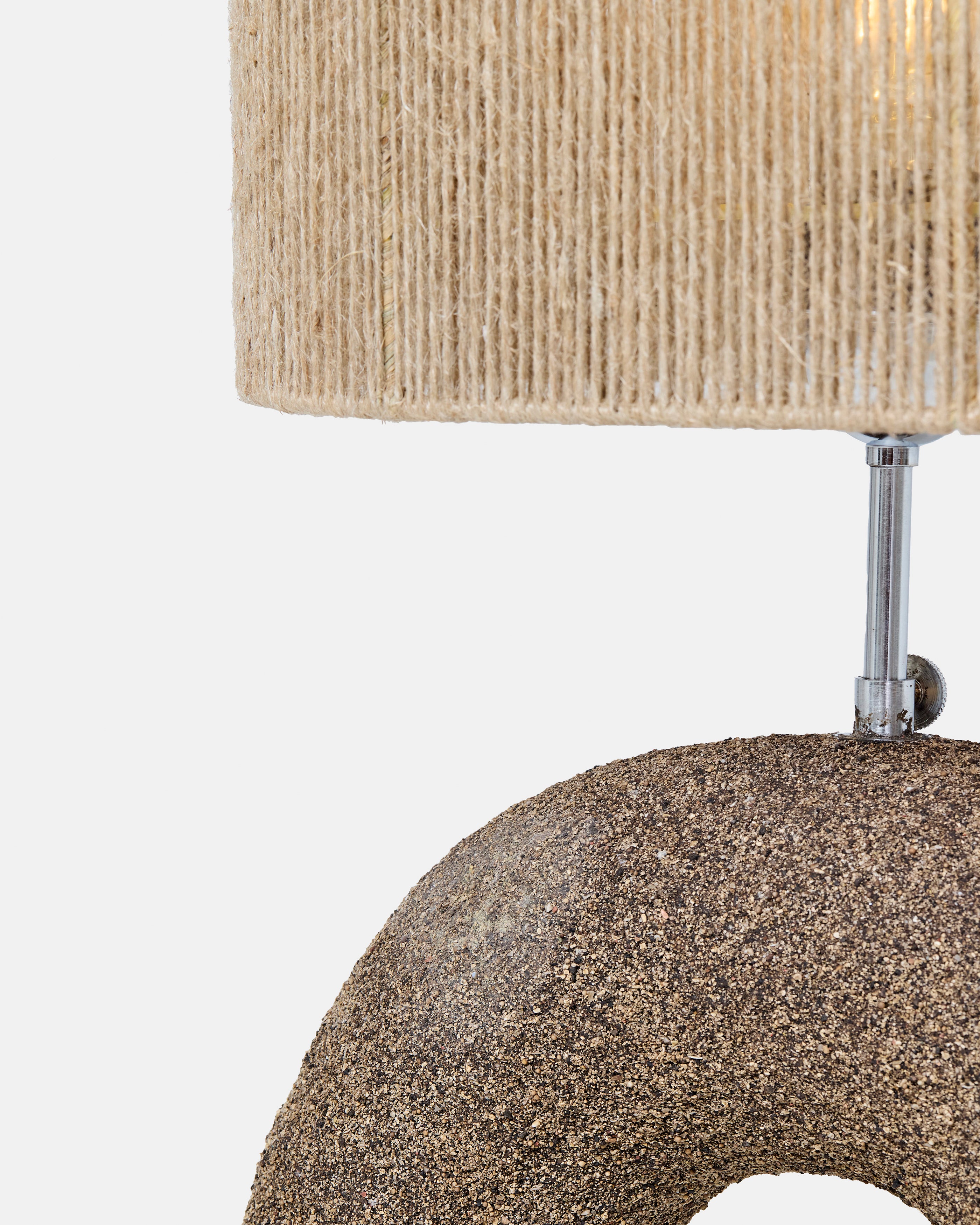 Lampe à poser en sable et résine avec abat-jour en corde, la lampe Terra dark brown affirme une présence sculpturale forte, réchauffée par une lumière douce et enveloppante. Façonnée artisanalement à Bali selon une technique de projection de sable et de résine, sa base brun profond dévoile une texture minérale intense, presque tellurique, qui évoque la matière brute façonnée par le temps. L’abat-jour en corde vient filtrer la lumière avec délicatesse, créant un contraste subtil entre densité et légèreté. Pensée pour une console, une table de chevet ou un coin lecture, cette lampe devient un véritable objet décoratif, idéal pour un intérieur contemporain, organique ou wabi-sabi.