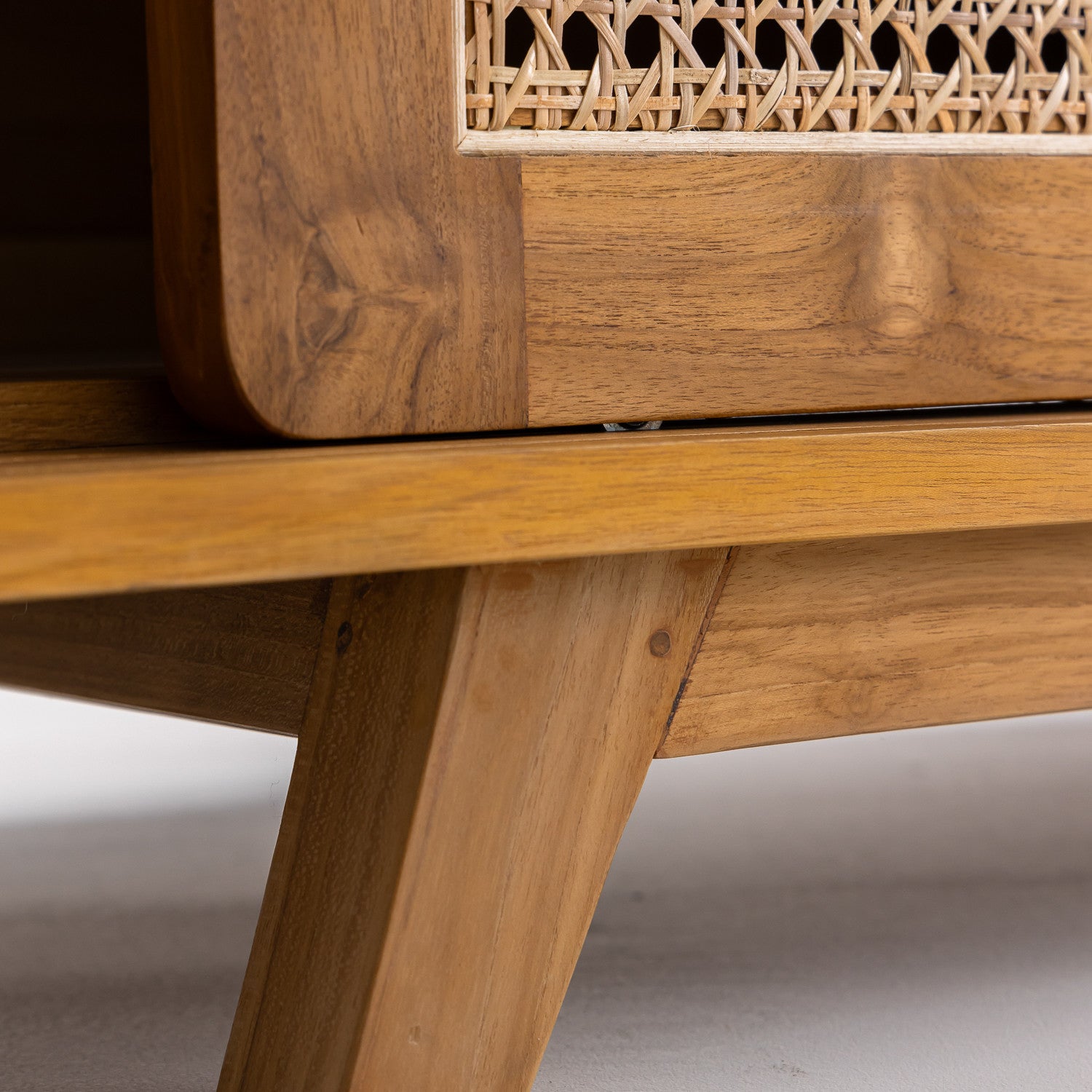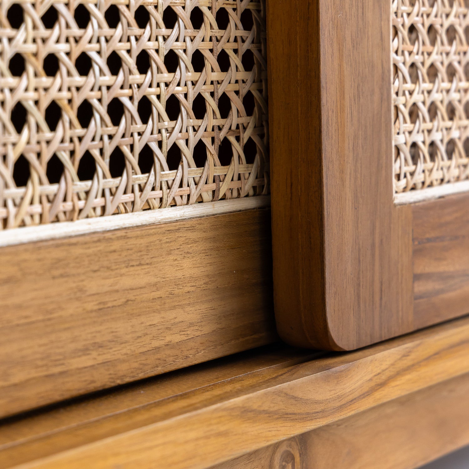 Meuble TV en Bois de Teck et Cannage - 150x40x45 cm