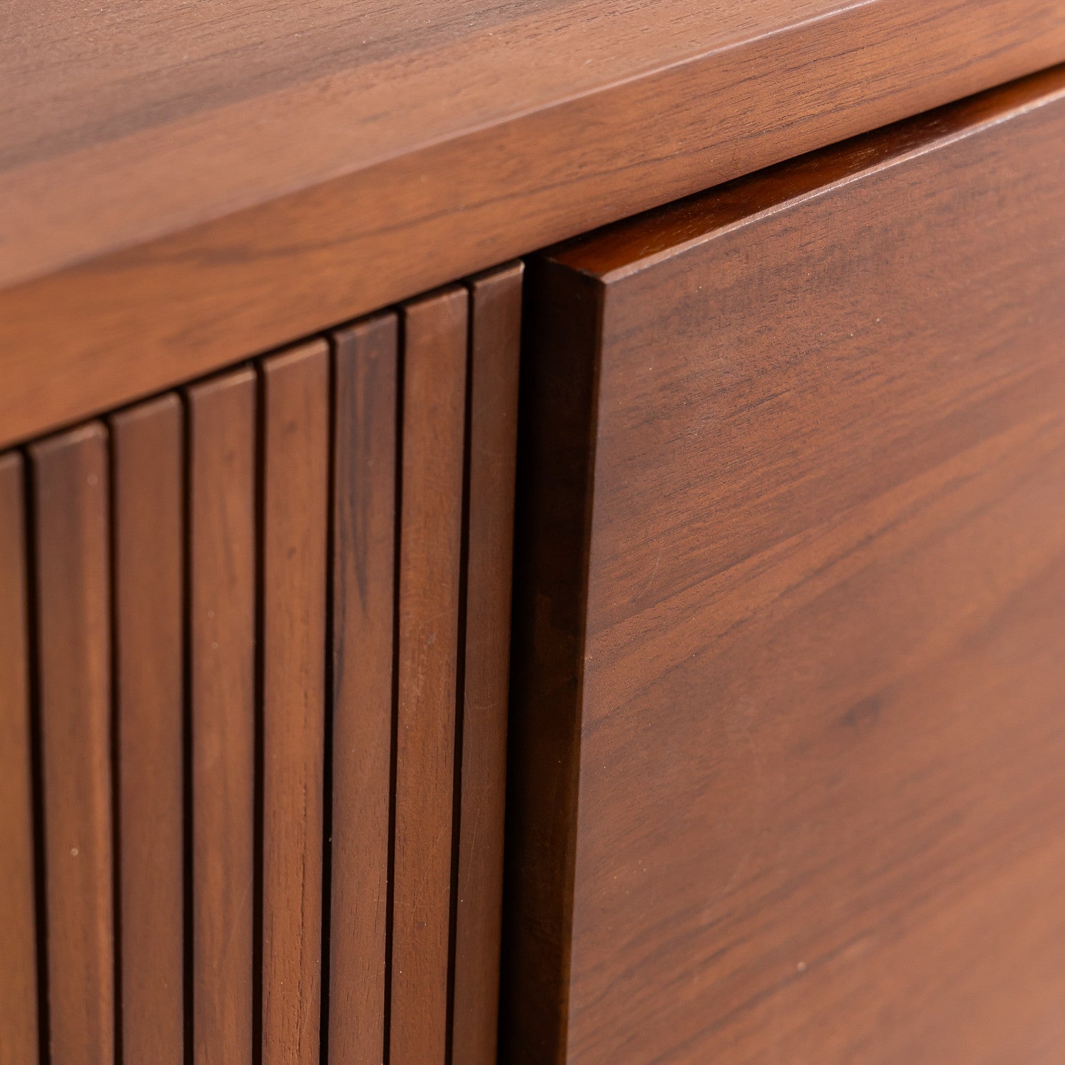 Le meuble TV suspendu 5 portes en teck est une solution à la fois pratique et élégante pour organiser votre salon. Son design moderne et sa finition en teck apportent une ambiance chaleureuse et naturelle, idéale pour des intérieurs contemporains.