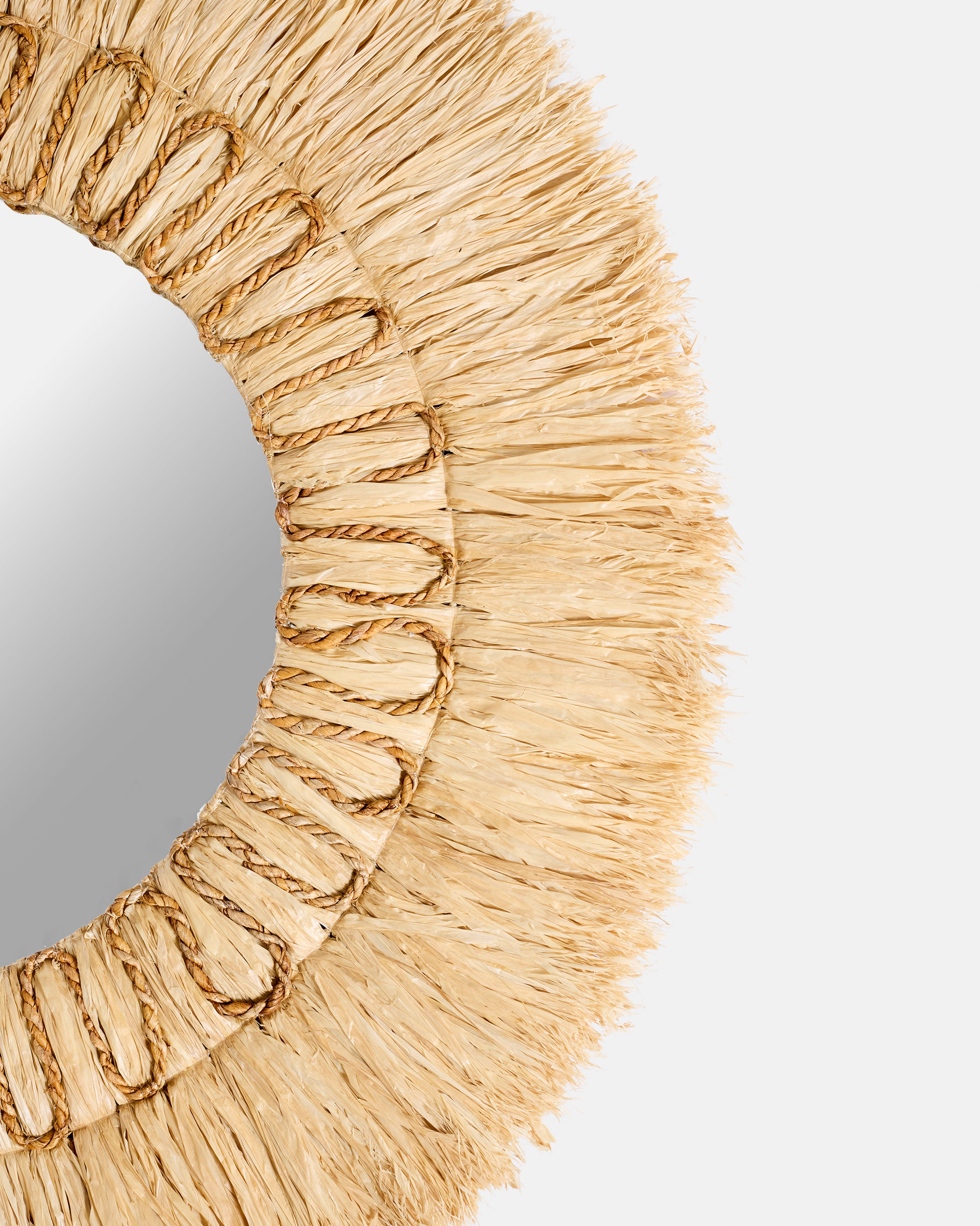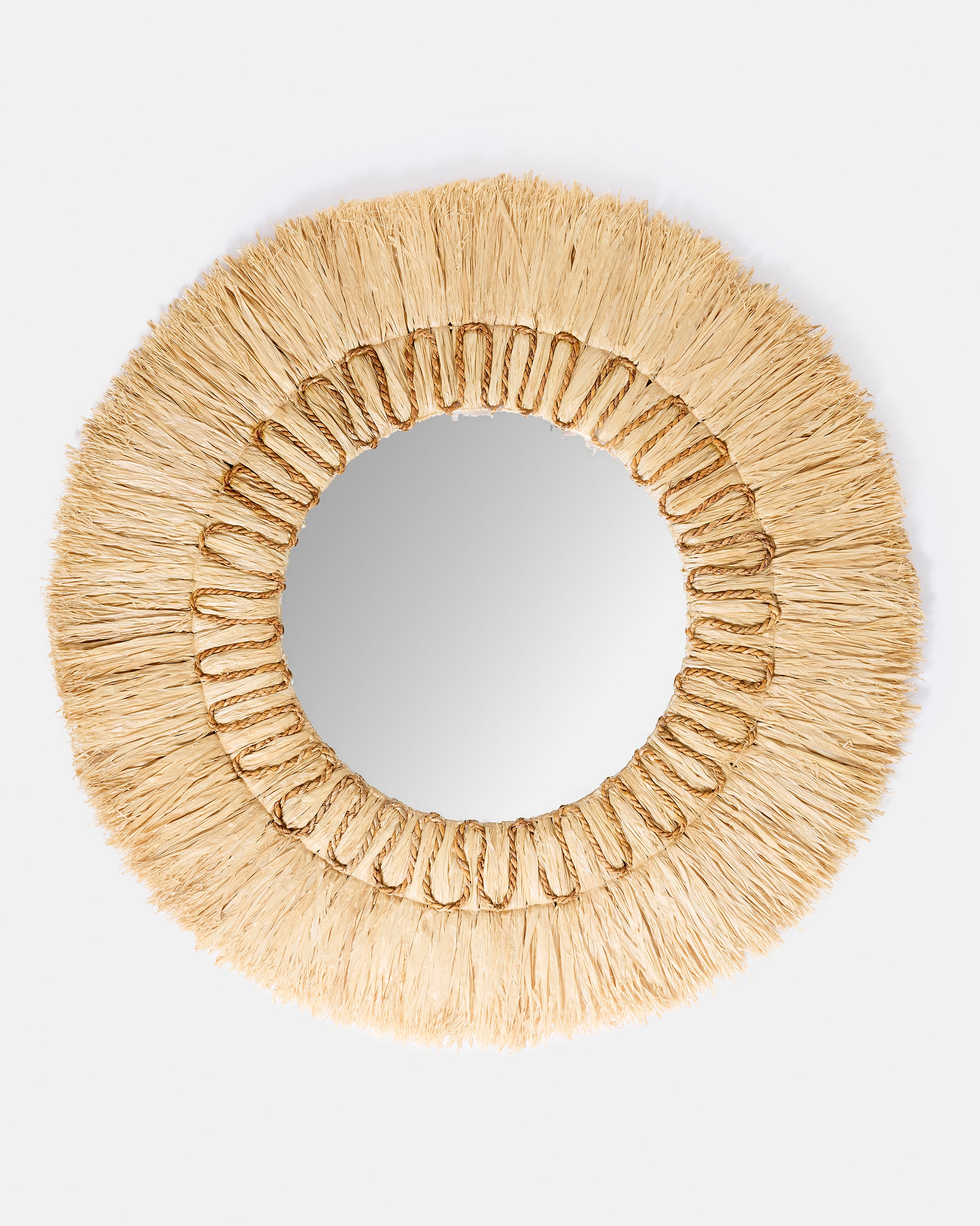 Le miroir en sisal installe dans l’espace une sensation immédiate de naturel apaisé. Son large cercle de fibres tressées semble capter la lumière pour mieux la diffuser, créant autour de lui une atmosphère douce, presque solaire. On y retrouve l’âme des maisons ouvertes sur l’extérieur, où les matières brutes dialoguent avec la clarté du jour et donnent à chaque pièce une respiration nouvelle.