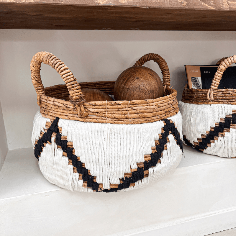 Dans une entrée, un salon ou une chambre, le Panier Campur, objet déco en fibre de banane naturelle et macramé, apporte un rangement d’appoint aussi pratique que décoratif. Tissé à la main, il mêle texture naturelle et esprit artisanal avec beaucoup de caractère.