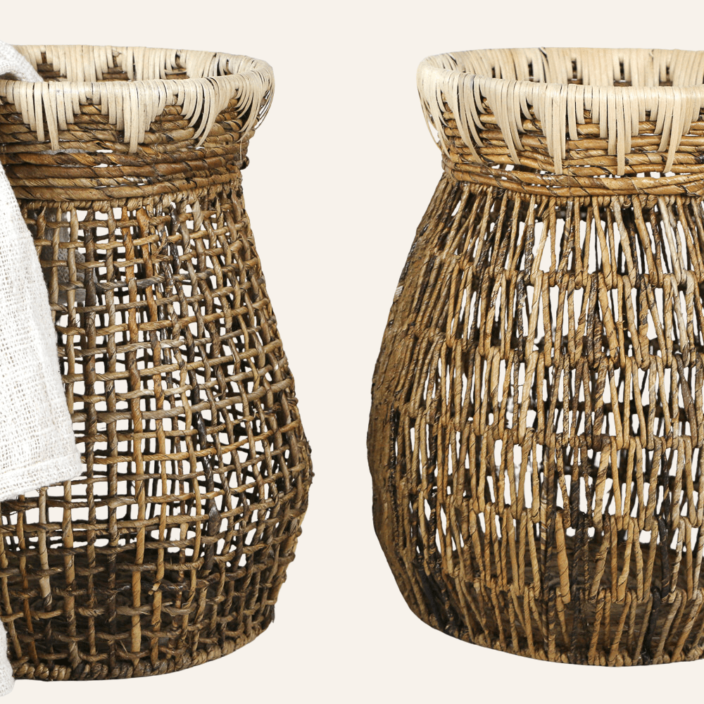 Ce panier en fibre de banane apporte une note naturelle et authentique à l’intérieur, tout en répondant aux besoins du quotidien avec élégance. Son tressage artisanal révèle la beauté brute des fibres végétales et crée un jeu de textures chaleureux, à la fois visuel et tactile. À la fois décoratif et fonctionnel, il accueille plaids, coussins ou objets du quotidien et trouve naturellement sa place dans un salon, une chambre ou une salle de bain. Sa présence simple et organique réchauffe l’espace et s’inscrit parfaitement dans une ambiance bohème ou inspirée par les matières naturelles.