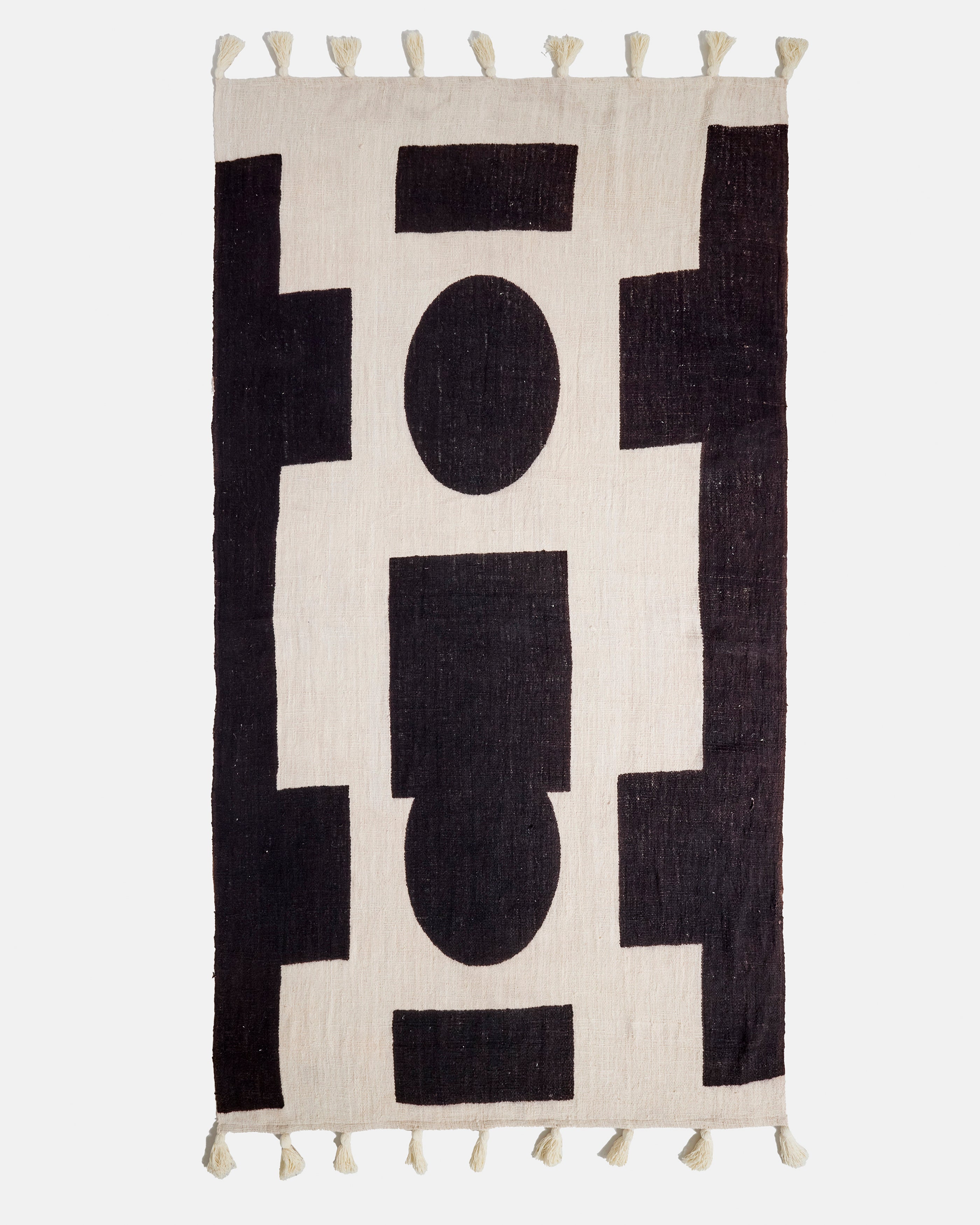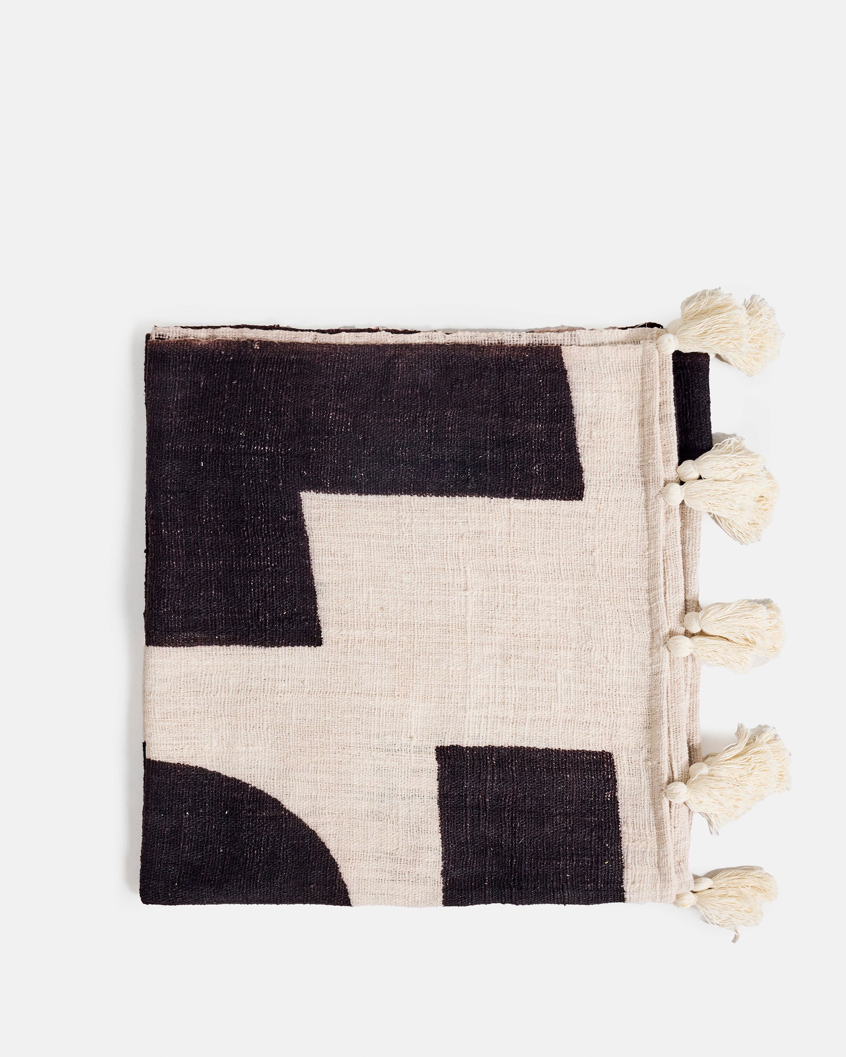 Alma enveloppe l’espace et le corps dans une douceur immédiate, presque instinctive. Tissé à la main à Bali en laine pure, ce plaid révèle une matière chaleureuse au toucher dense et vivant, que l’on a envie de garder contre soi, comme un refuge personnel. Ses motifs graphiques noirs, rythmés par des formes pleines et apaisantes, contrastent avec le fond écru et créent une présence calme, rassurante, profondément tactile. Alma ne se contente pas d’habiller un canapé ou un fauteuil, il accompagne les moments de pause, les soirées lentes, les instants où l’on cherche à se lover et à se sentir bien.