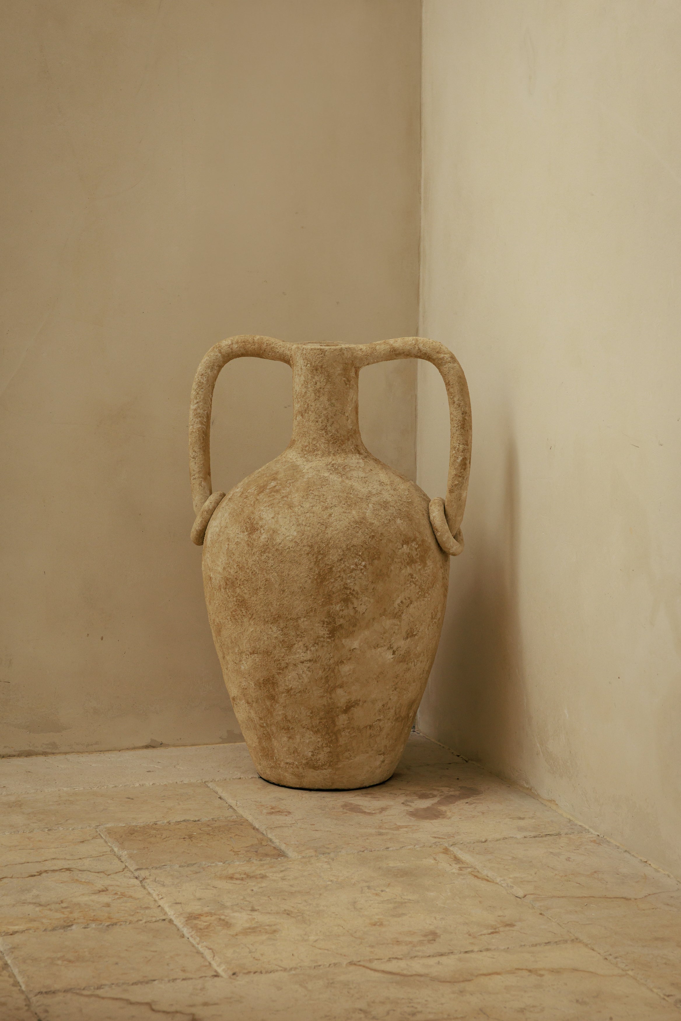 Le pot Buffalo crème est une pièce façonnée à la main en Indonésie, pensée comme un objet de matière et de texture avant tout. Sa finition crème révèle les stries irrégulières du façonnage, ces marques laissées par le geste qui donnent au pot une profondeur visuelle naturelle et une élégance brute. Sa silhouette généreuse, équilibrée et sculpturale trouve naturellement sa place dans les intérieurs wabi-sabi, bohème chic ou minimalistes, où l’on cherche des objets qui racontent sans surcharger. Utilisé seul comme élément décoratif ou comme pot pour plantes et arbustes, Buffalo crème structure l’espace avec sobriété et caractère. Chaque pièce est unique, modelée sur l’île de Lombok selon des techniques traditionnelles, et porte en elle cette beauté imparfaite qui fait toute la différence.