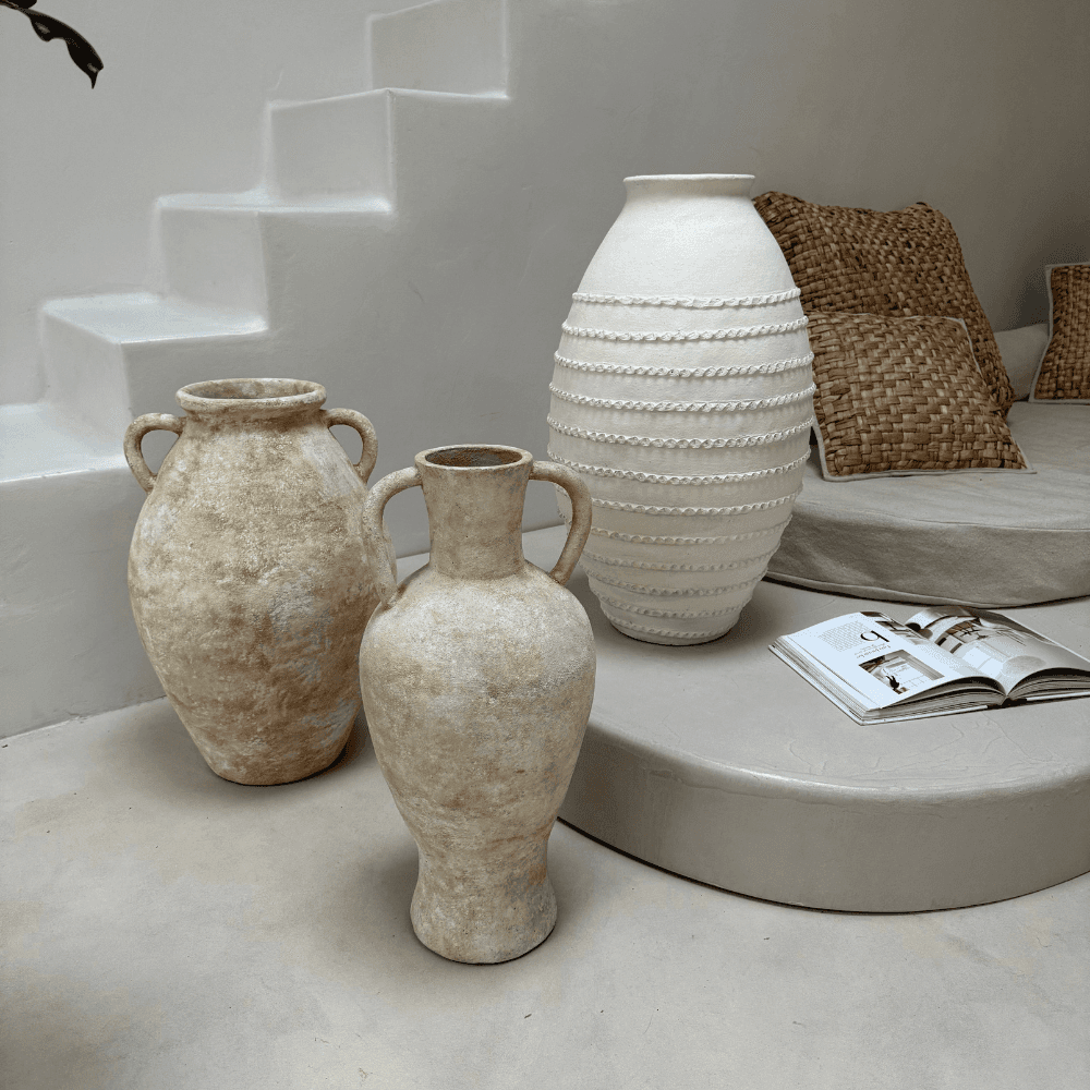 Explorez le charme du Vase Sari, façonné à la main en argile. Une œuvre d'art artisanale qui évoque la simplicité élégante, idéale pour embellir n'importe quel espace.