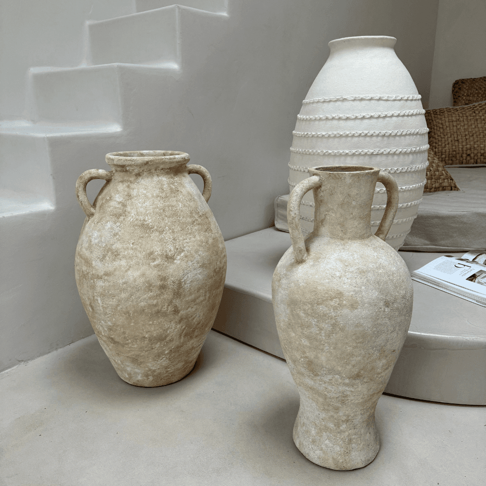 Posé sur une console, une étagère ou une table basse, Indah introduit dans la pièce un accent brut et maîtrisé. Ce vase en argile met en valeur la simplicité de la matière et le caractère d'un façonnage artisanal, avec une ligne élancée qui attire le regard sans alourdir l'ensemble. Sa finition rustique souligne l'authenticité de l'objet et lui permet de s'intégrer aussi bien dans un décor épuré que dans un intérieur plus texturé. Utilisé tel quel comme pièce décorative ou accompagné de quelques fleurs séchées, il structure un coin de salon, une entrée ou un dessus de buffet avec justesse. L'argile de haute qualité renforce cette impression de pièce durable, ancrée dans un savoir-faire indonésien où chaque courbe conserve une part du geste. Design Trip propose ici un vase décoratif au dessin simple et affirmé, facile à associer à d'autres matières naturelles pour composer un ensemble cohérent et soigné.