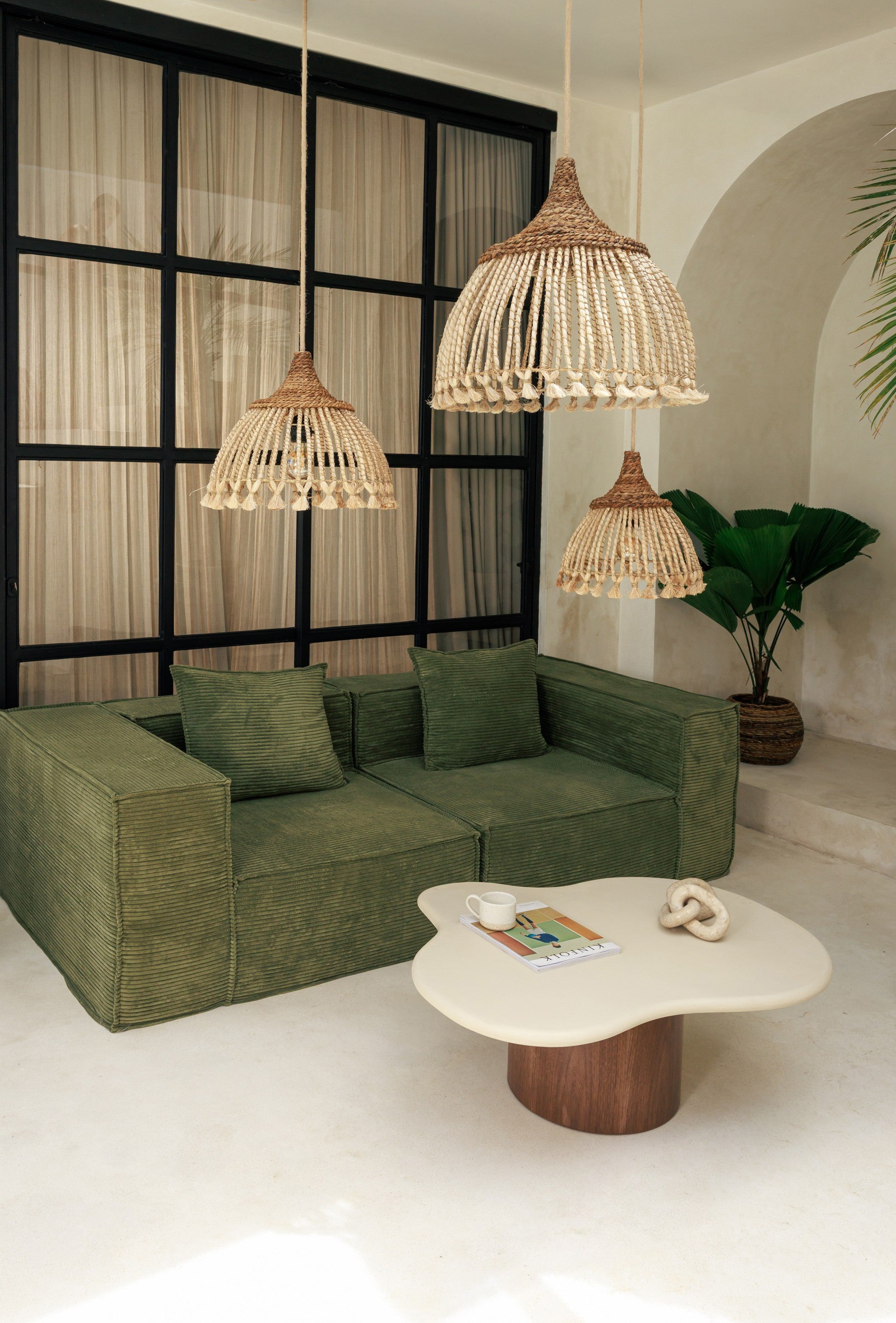 La table basse Riva Coffee – Noyer se dévoile comme une pièce sculpturale, posée au cœur du salon comme une respiration minérale et chaleureuse à la fois. Son plateau en béton clair aux lignes organiques semble avoir été modelé par le temps, avec des courbes libres qui adoucissent l’espace et captent la lumière avec subtilité. En contraste, son pied cylindrique en placage noyer révèle un veinage profond et strié, presque graphique, qui apporte une chaleur enveloppante et une présence architecturale apaisée. Autour d’elle, les matières dialoguent naturellement, le bois répond au minéral, la lumière glisse sur les surfaces, et l’espace devient un lieu de rencontre, de repos et de contemplation. Riva Coffee incarne cette élégance contemporaine et organique propre à Design Trip, une pièce qui structure sans alourdir, et qui transforme instantanément l’atmosphère d’un intérieur.