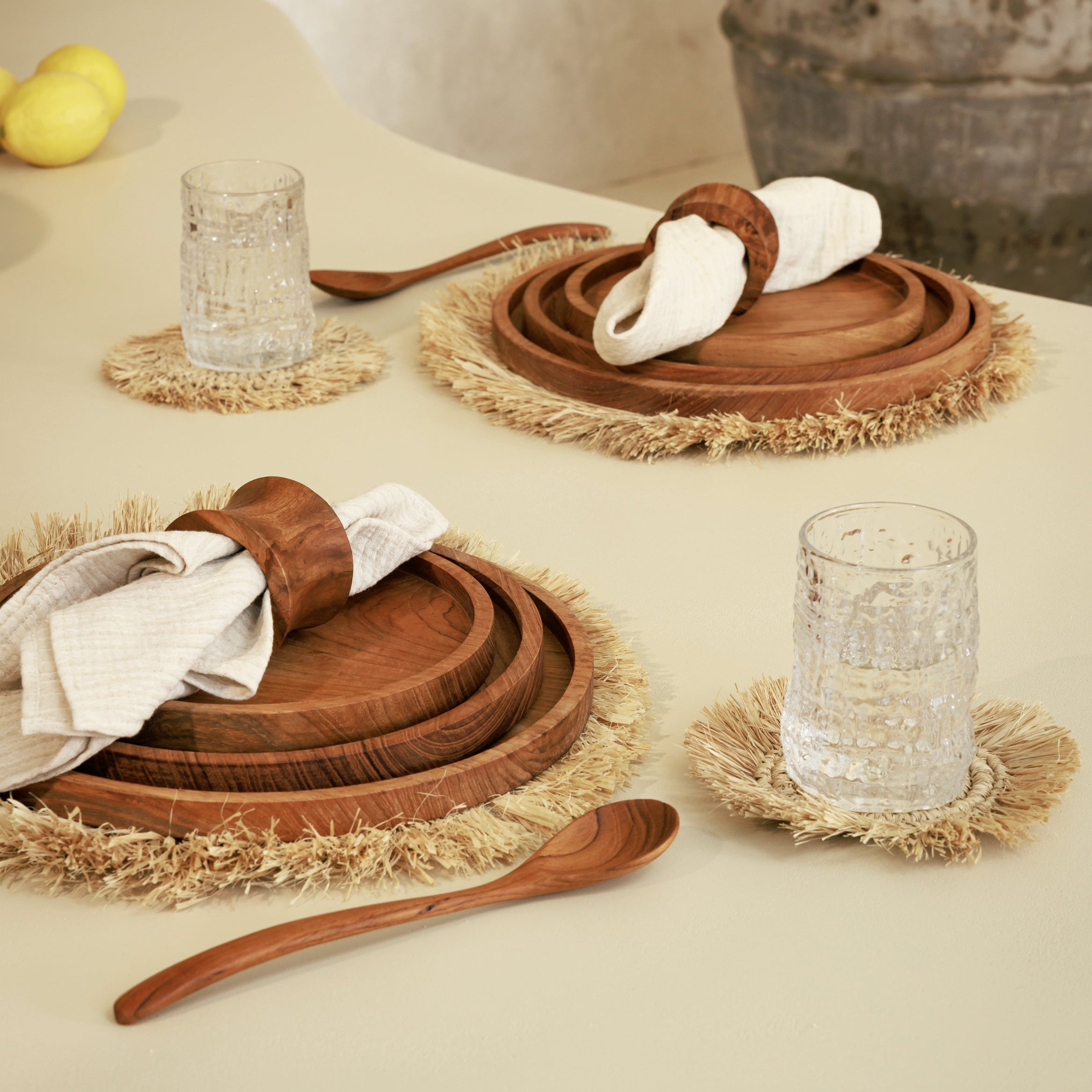 Le rond de serviette en teck met la touche finale à une table soignée, du repas quotidien aux grandes occasions. Réalisé en bois de teck avec une finition naturelle, il apporte un accent artisanal, sobre et chaleureux, facile à associer au linge de table comme à une vaisselle plus contemporaine.
