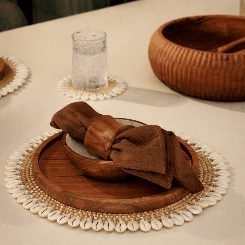 La serviette de table marron en toile de coton séduit par sa texture naturelle et son tombé élégant qui habillent instantanément la table. Son tissu légèrement texturé apporte du caractère tout en restant doux et agréable à utiliser au quotidien. Associée à un rond de serviette ou simplement pliée dans l’assiette, elle crée une atmosphère chaleureuse et raffinée. Sa teinte marron profonde s’intègre facilement dans une décoration de table naturelle, contemporaine ou inspirée des maisons de vacances.