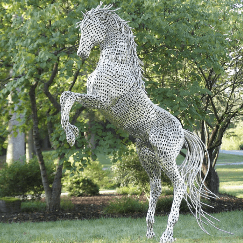 Statue cheval cylindre en inox