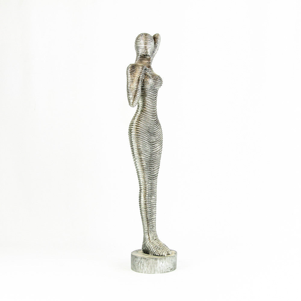 La statue Biola en aluminium célèbre la silhouette féminine dans une interprétation à la fois moderne et intemporelle. Sa ligne élancée et ses courbes fluides dessinent une présence délicate qui capte le regard sans jamais en faire trop. Façonnée à la main, elle révèle une texture subtile qui joue avec la lumière et donne à chaque angle une lecture différente de la pièce. Posée sur une console, une étagère ou un bureau, elle apporte cette touche artistique qui transforme l’espace et invite naturellement à la contemplation.