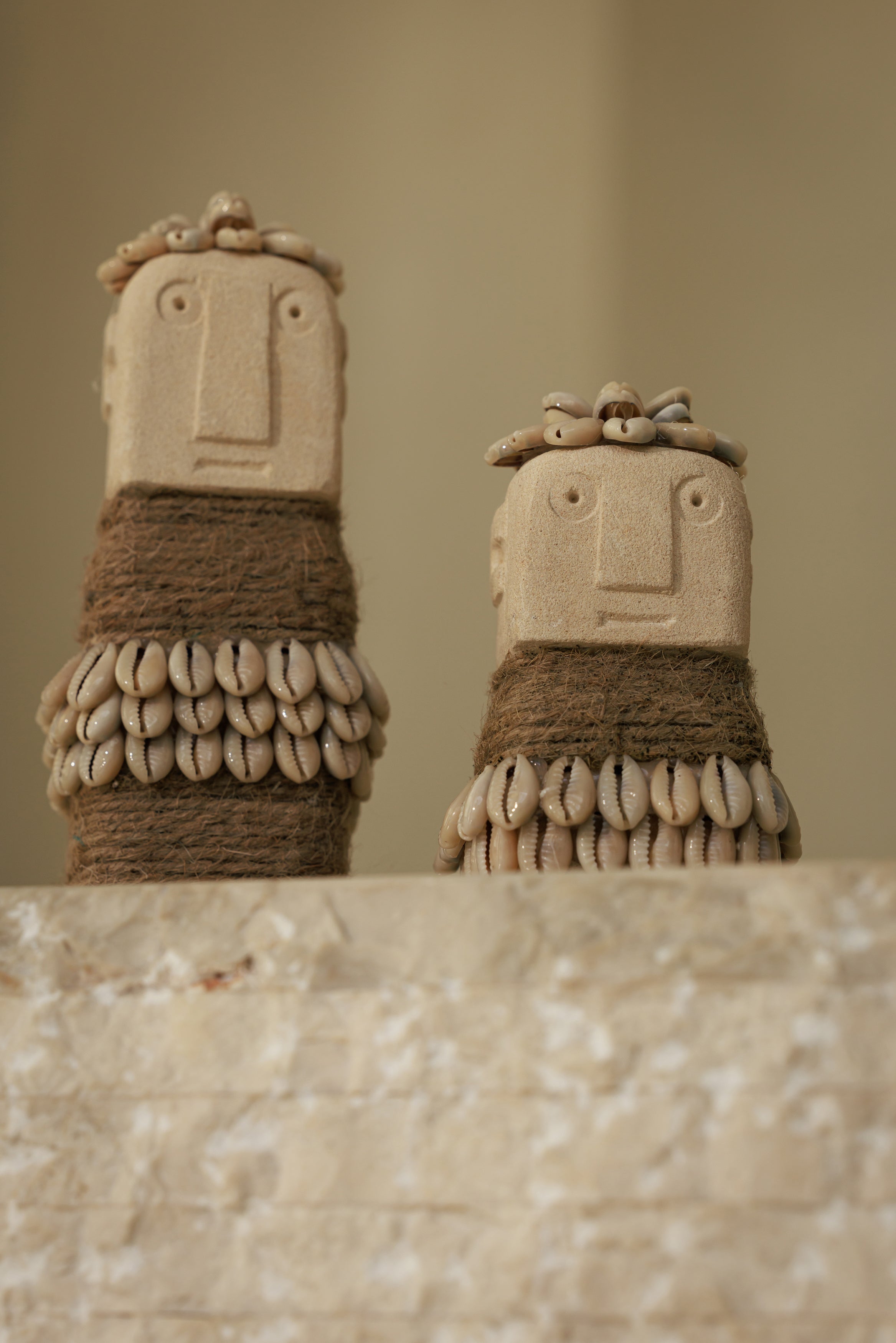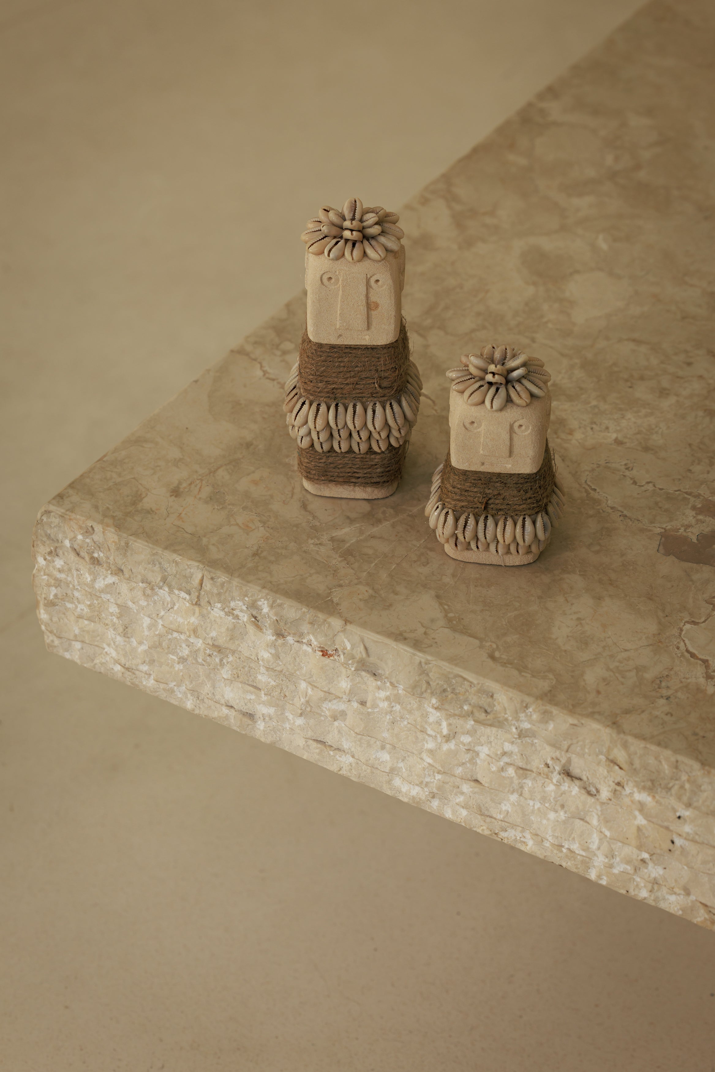 Née sur l’île de Sumba, cette statuette Patung semble porter en elle la beauté et la force des paysages volcaniques dont elle est issue. Taillée à la main dans la pierre de paras, elle dévoile une matière douce et minérale, presque poudrée, qui capte la lumière avec subtilité et révèle chaque trace du geste artisanal. Sa silhouette simple, volontairement épurée, dégage une présence apaisante, comme un talisman discret posé dans l’espace. Sur une étagère, une console ou au sol, elle installe une atmosphère à la fois brute et raffinée, évoquant les intérieurs où l’on mêle objets d’ailleurs, matières naturelles et sens du temps long. Plus qu’un objet décoratif, cette statuette devient un accent d’âme, une pièce silencieuse mais profondément expressive, capable de transformer l’équilibre d’une pièce par sa seule présence.