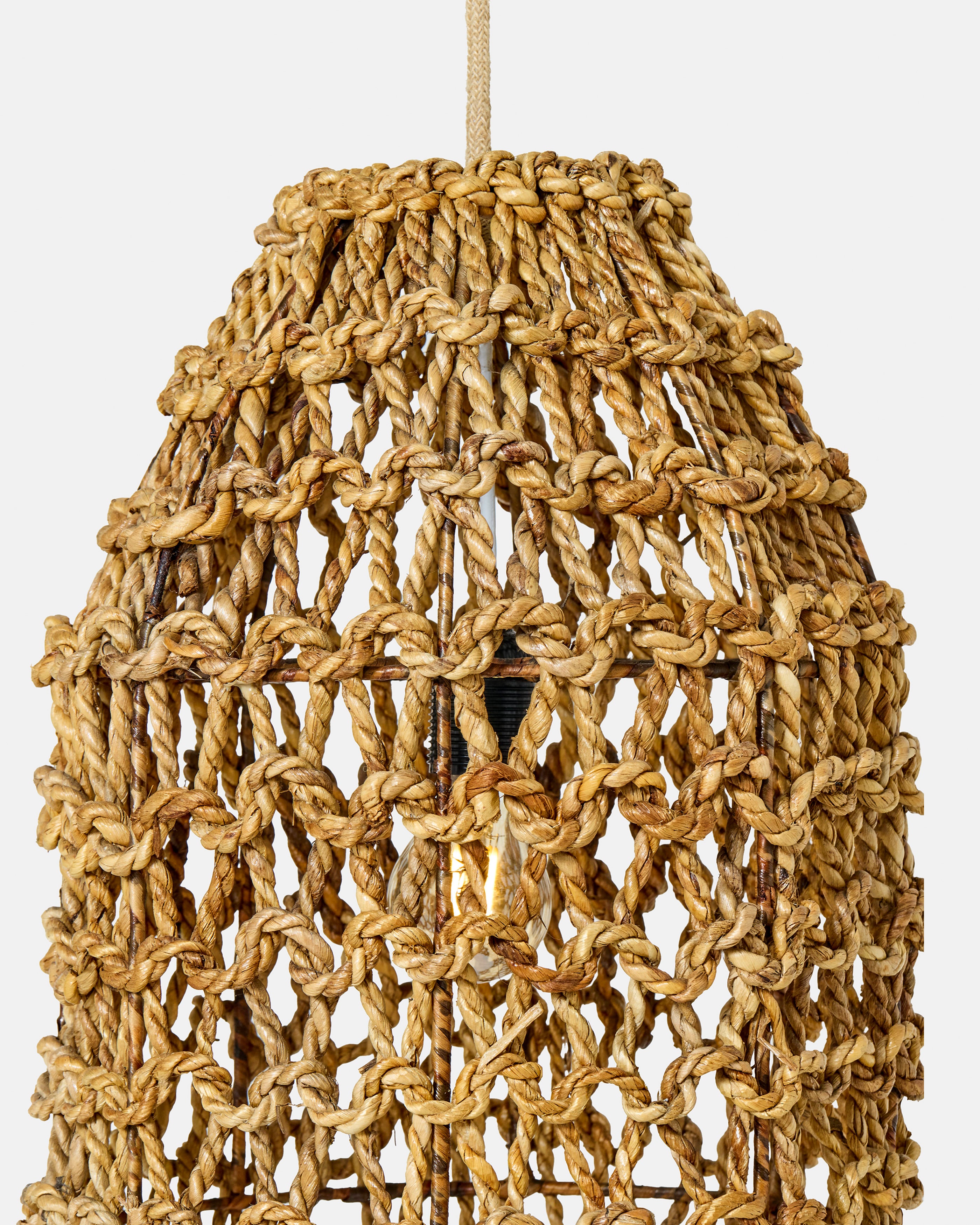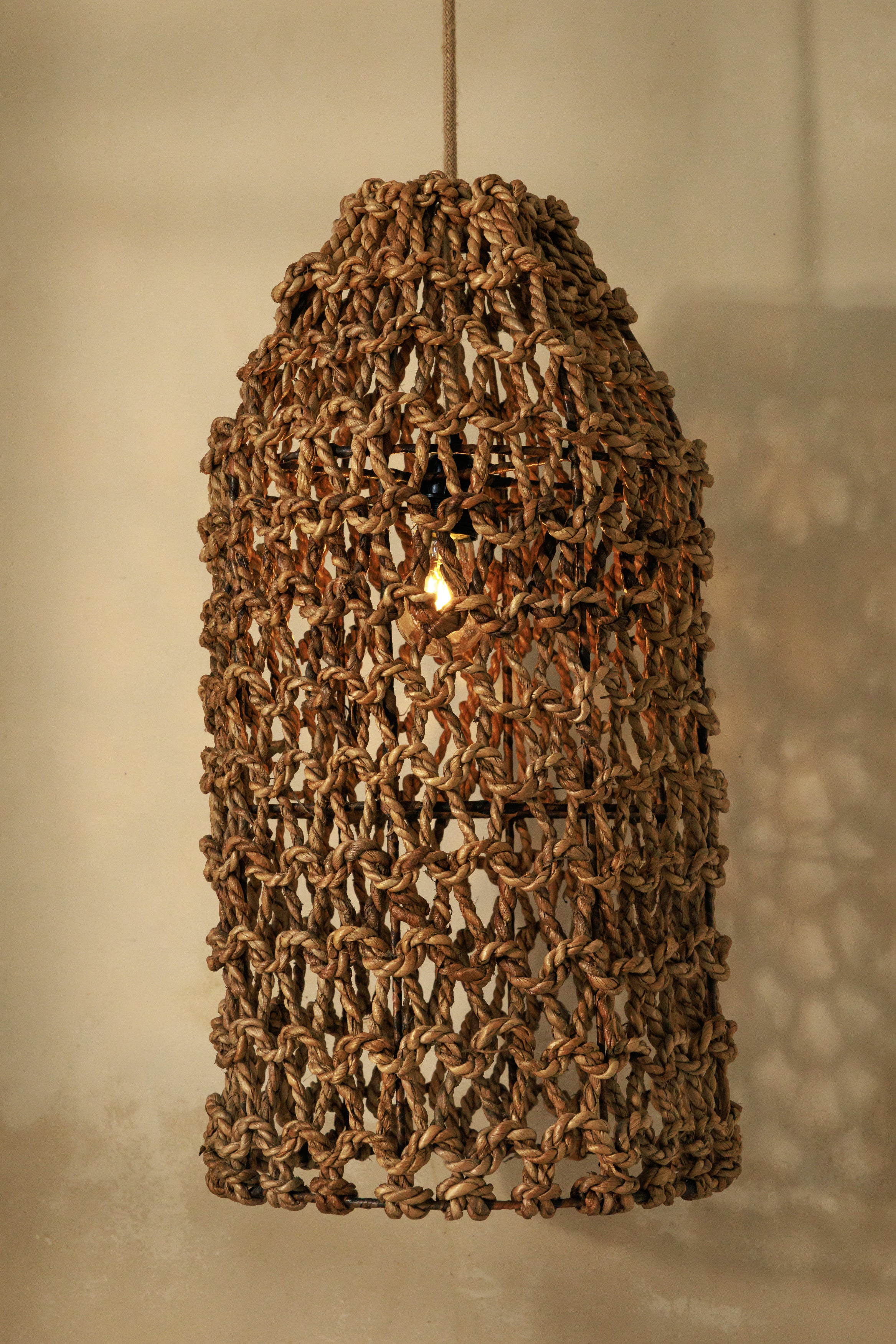Tressée à la main en fibre de banana, la suspension Banana de trente centimètres diffuse une lumière douce qui apporte chaleur et exotisme à votre intérieur. Son design naturel s’intègre parfaitement dans une décoration bohème, ethnique chic ou scandinave et crée une ambiance conviviale et relaxante dans une chambre, un salon ou une salle à manger.