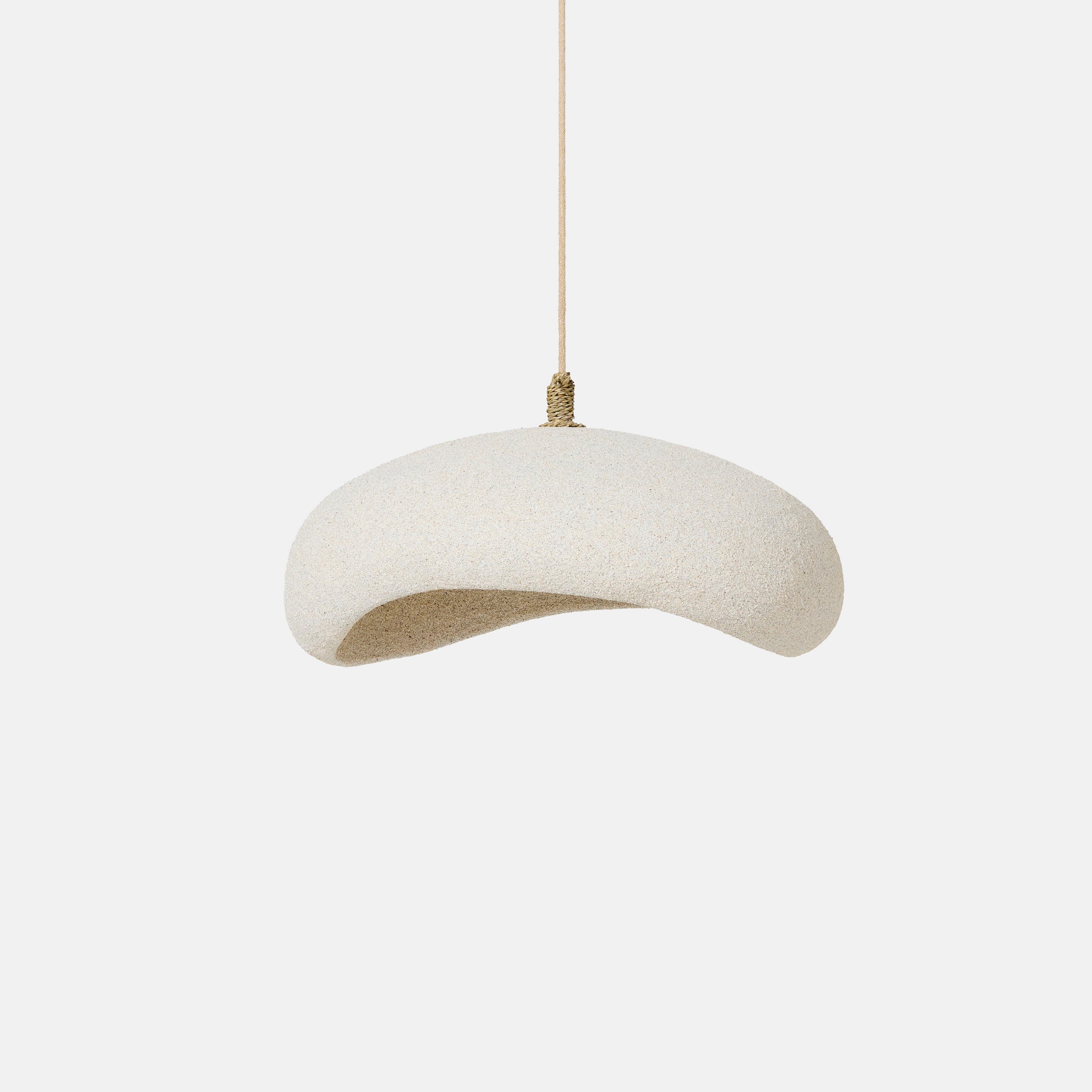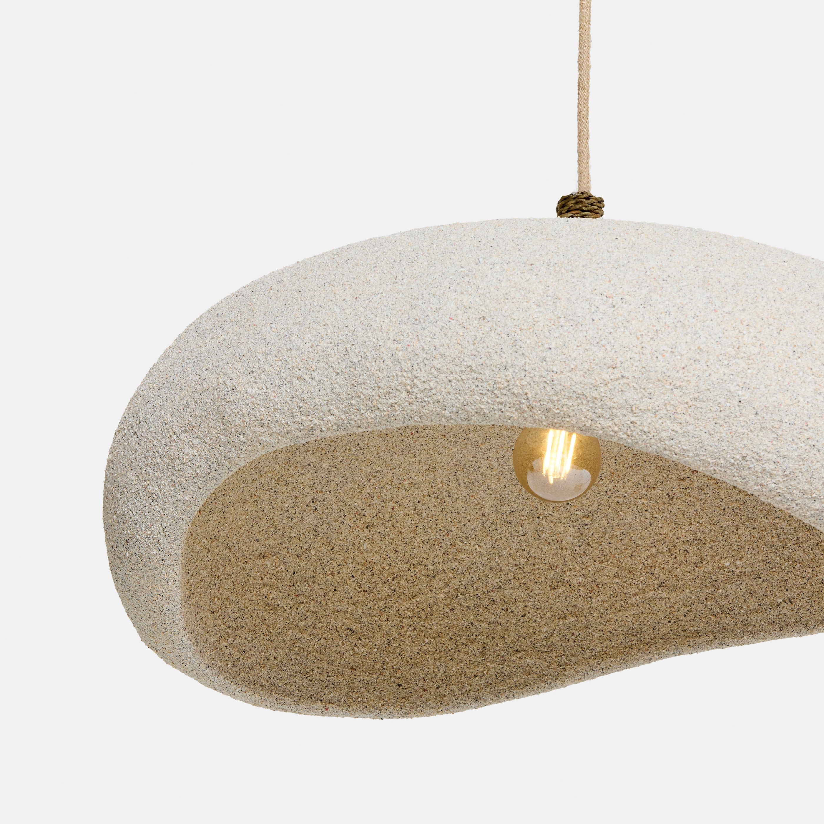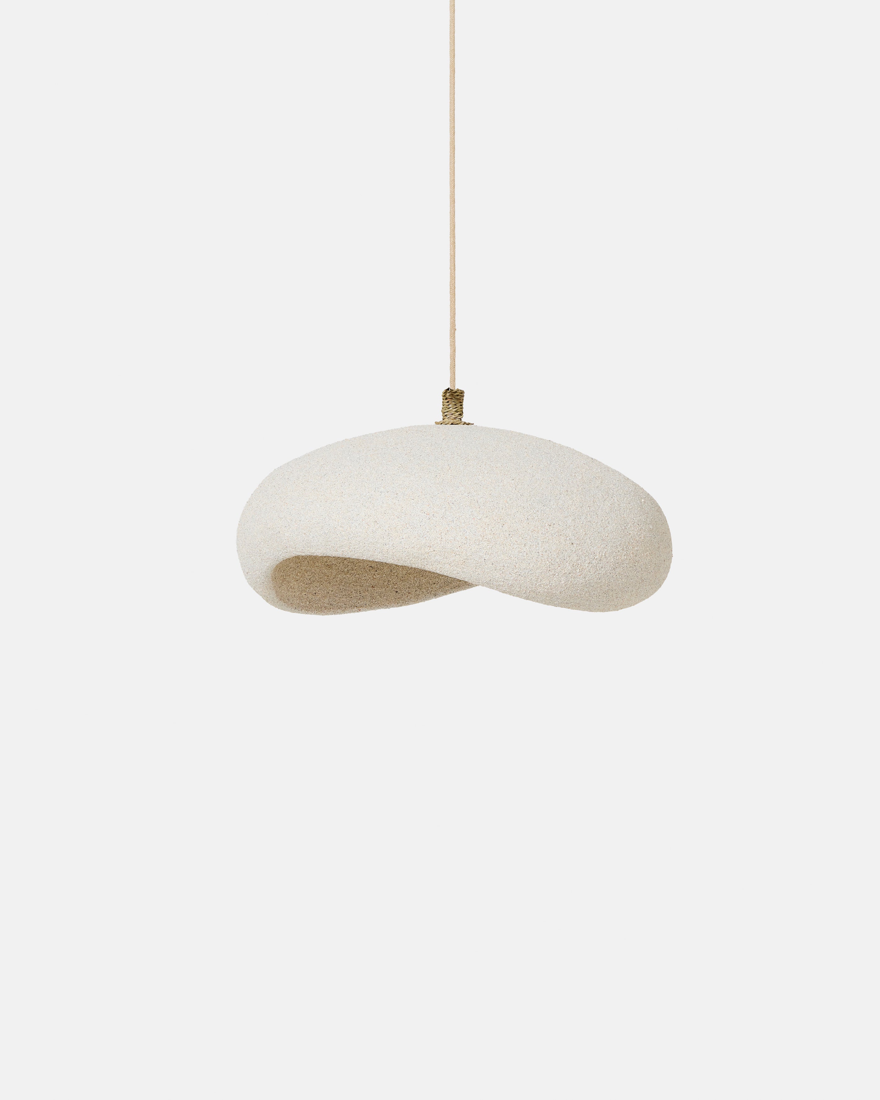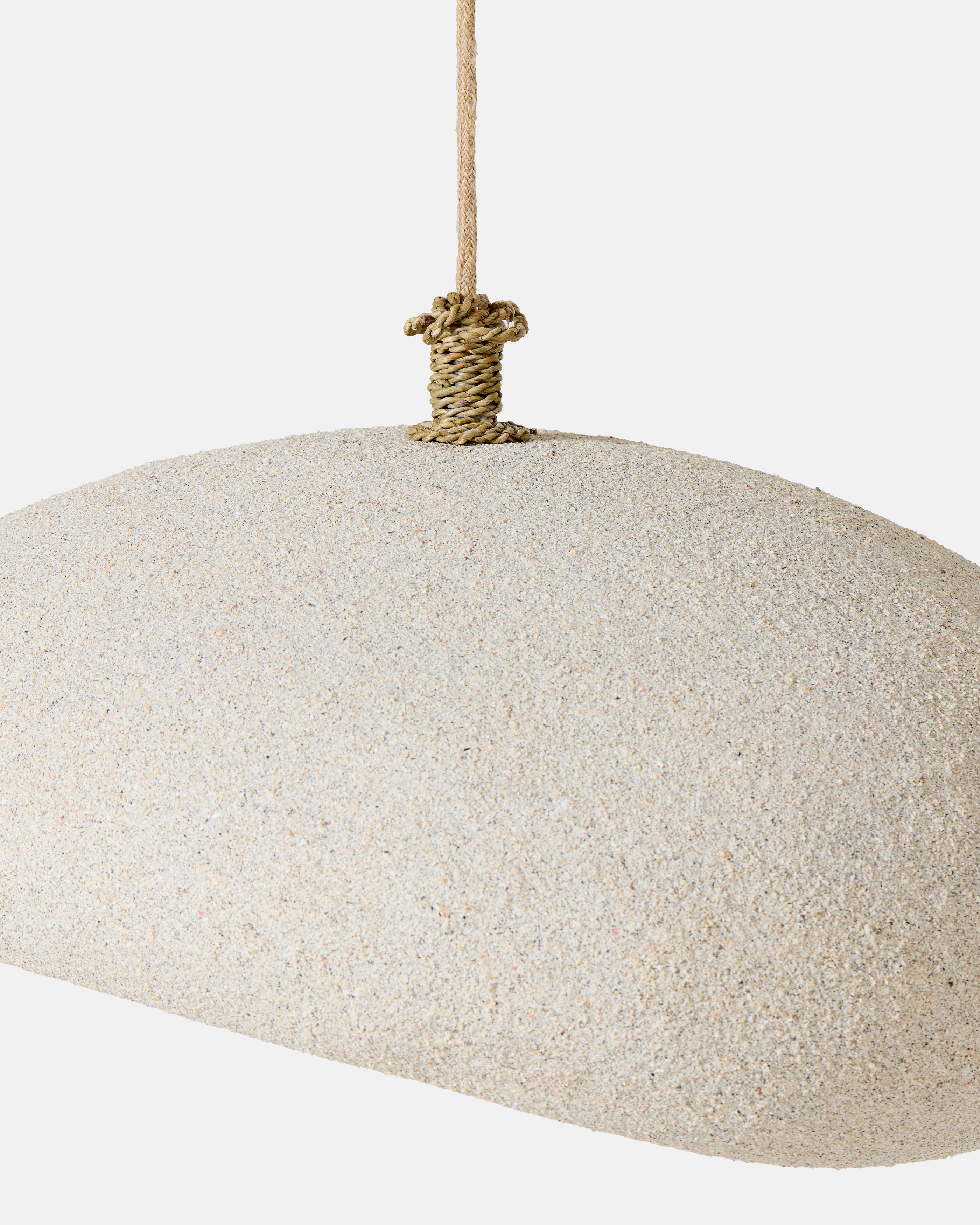 La suspension Malasso installe dans l’espace une atmosphère chaleureuse et solaire, comme un fragment de paysage suspendu entre lumière et matière. Sa texture organique, née du mélange du sable et de la résine, capte la clarté avec douceur et projette des ombres délicates qui font vibrer les murs. On y retrouve cette sensation rare d’un intérieur qui respire, où chaque détail semble choisi pour ralentir le rythme et laisser place à une lumière plus sensible.