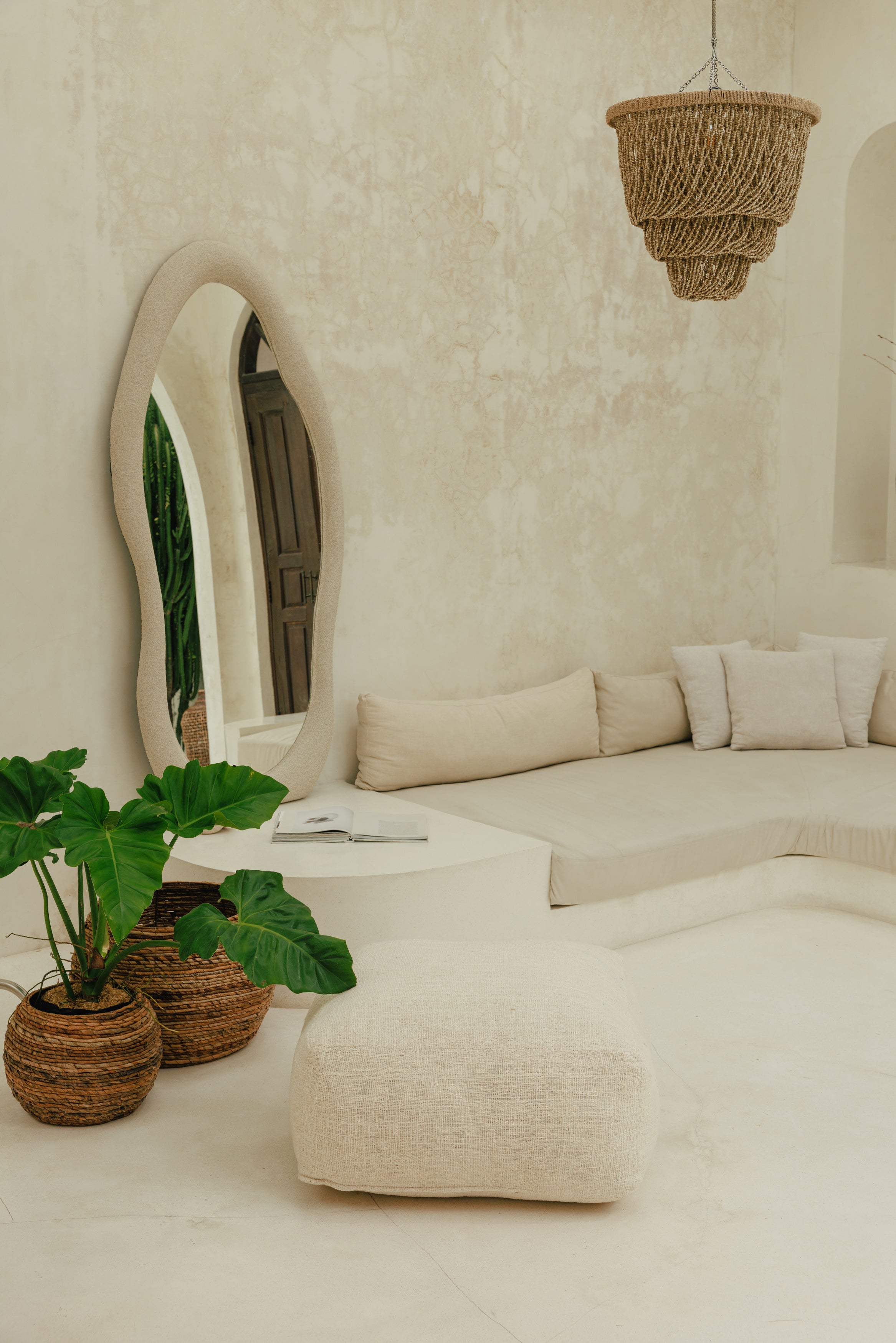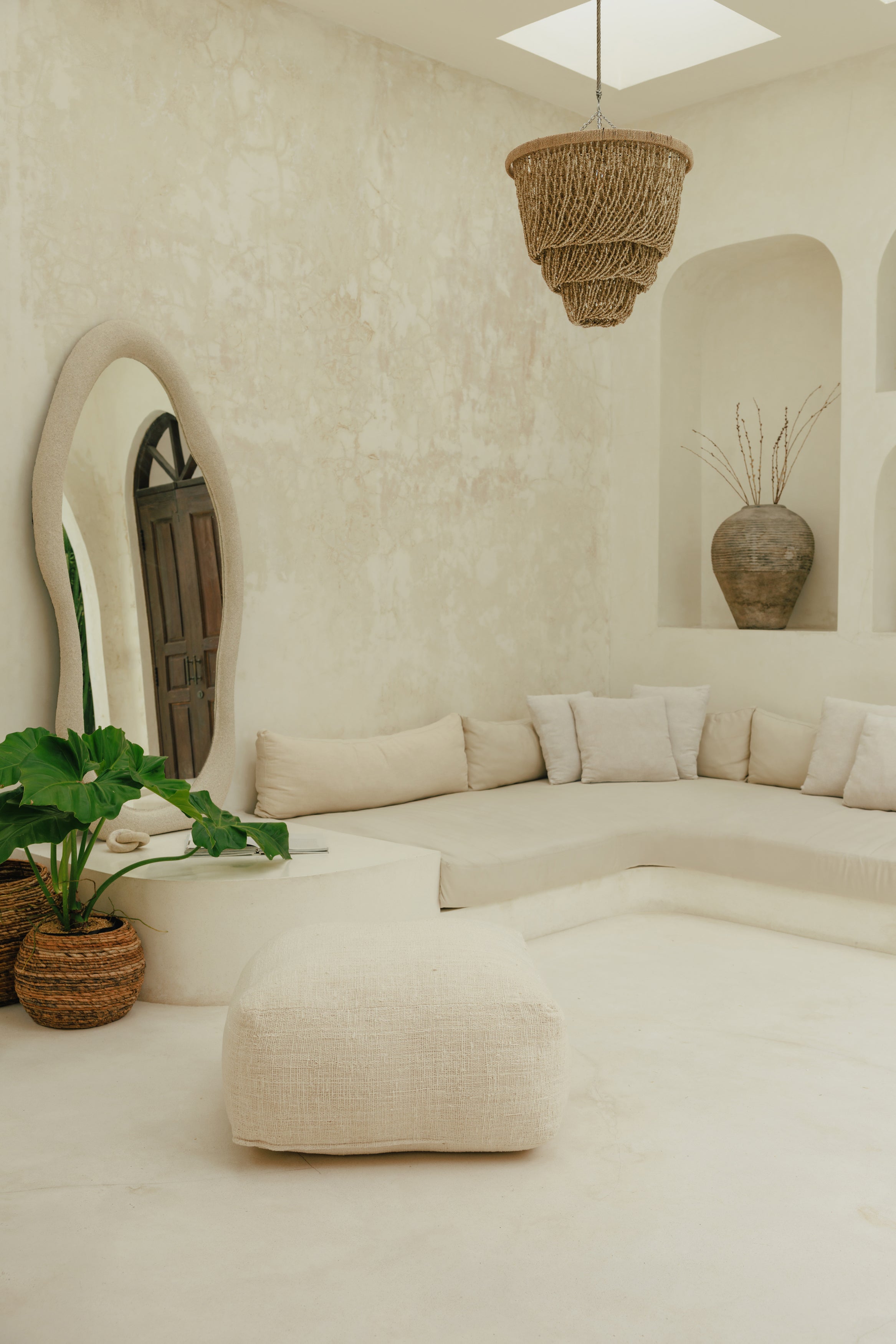 Dans une chambre, une entrée ou au-dessus d’un coin salon, la suspension Tama en perles et corde diffuse un éclairage doux et tamisé. Sa structure ajourée laisse passer la clarté avec délicatesse et compose un point focal décoratif, entre esprit artisanal et allure bohème.