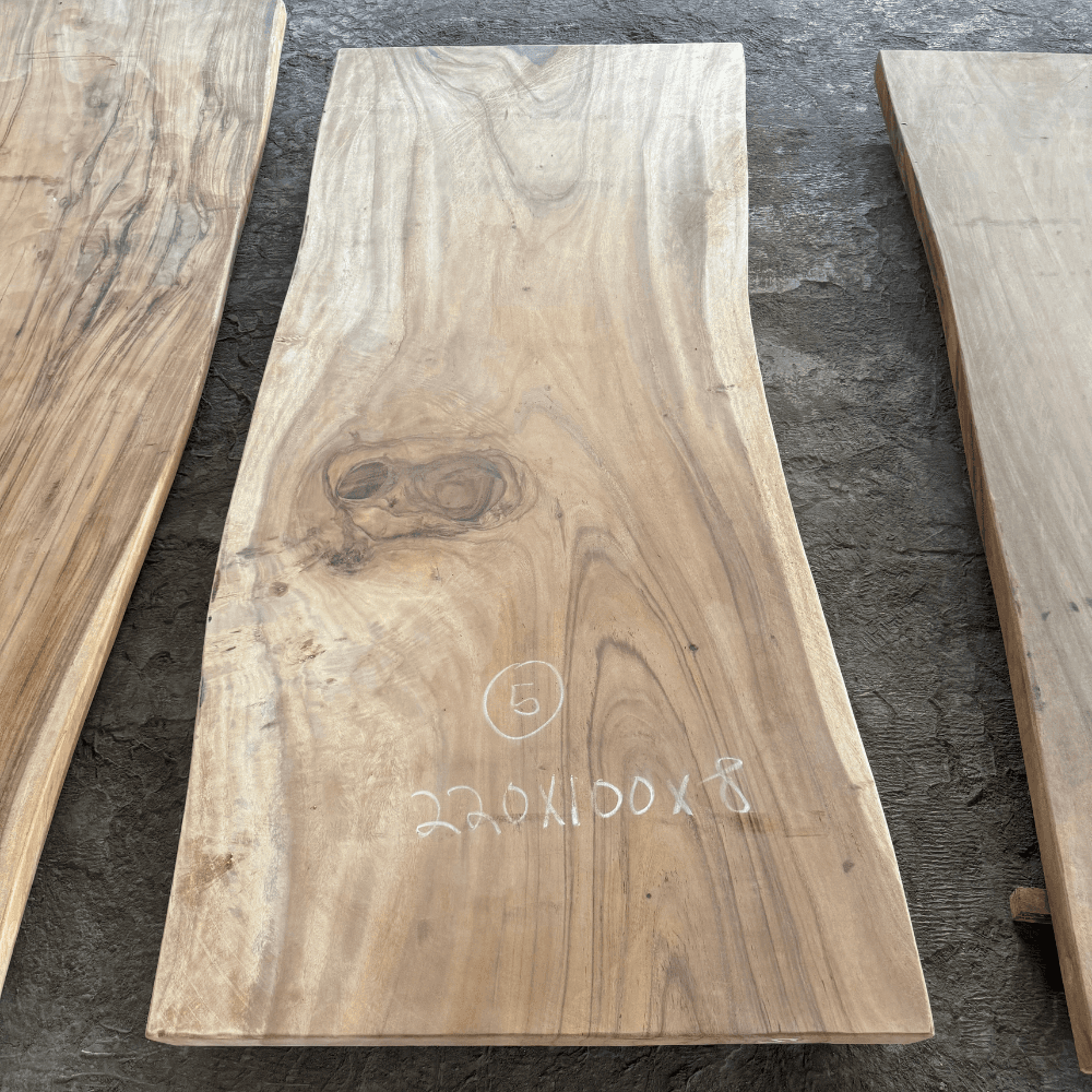 Le suar est un bois massif authentique, avec tout le charme d’un matériau naturel et vivant. Comme tout bois de caractère, il peut évoluer au fil du temps selon son environnement : température, humidité, luminosité… Ces petites variations peuvent parfois créer des fissures. Rassurez-vous : c’est totalement normal et cela fait partie de la beauté du bois massif. Chaque plateau raconte ainsi sa propre histoire. Nos plateaux sont séchés et stabilisés avec soin, mais aucun bois massif ne peut rester complètement figé. C’est ce qui lui donne son âme et son unicité. Pour cette raison, d’éventuelles fissures apparues après l’installation ne sont pas considérées comme un défaut ou un motif de retour.