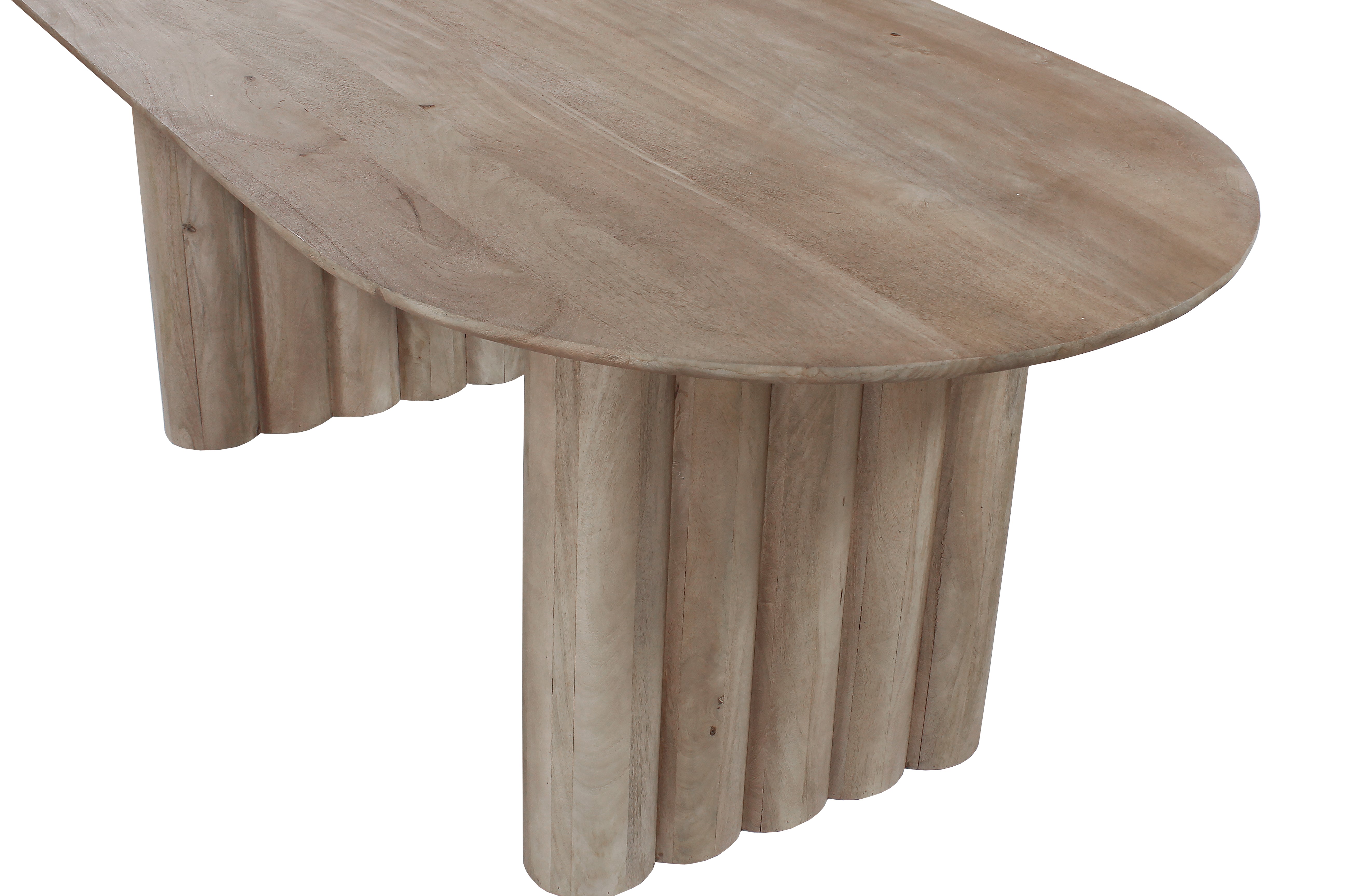 Table à manger ovale en bois massif de manguier finition marron clair, la table Jala illumine naturellement une salle à manger contemporaine, bohème chic ou méditerranéenne grâce à sa silhouette organique, son plateau fluide et sa surface protégée anti-taches.