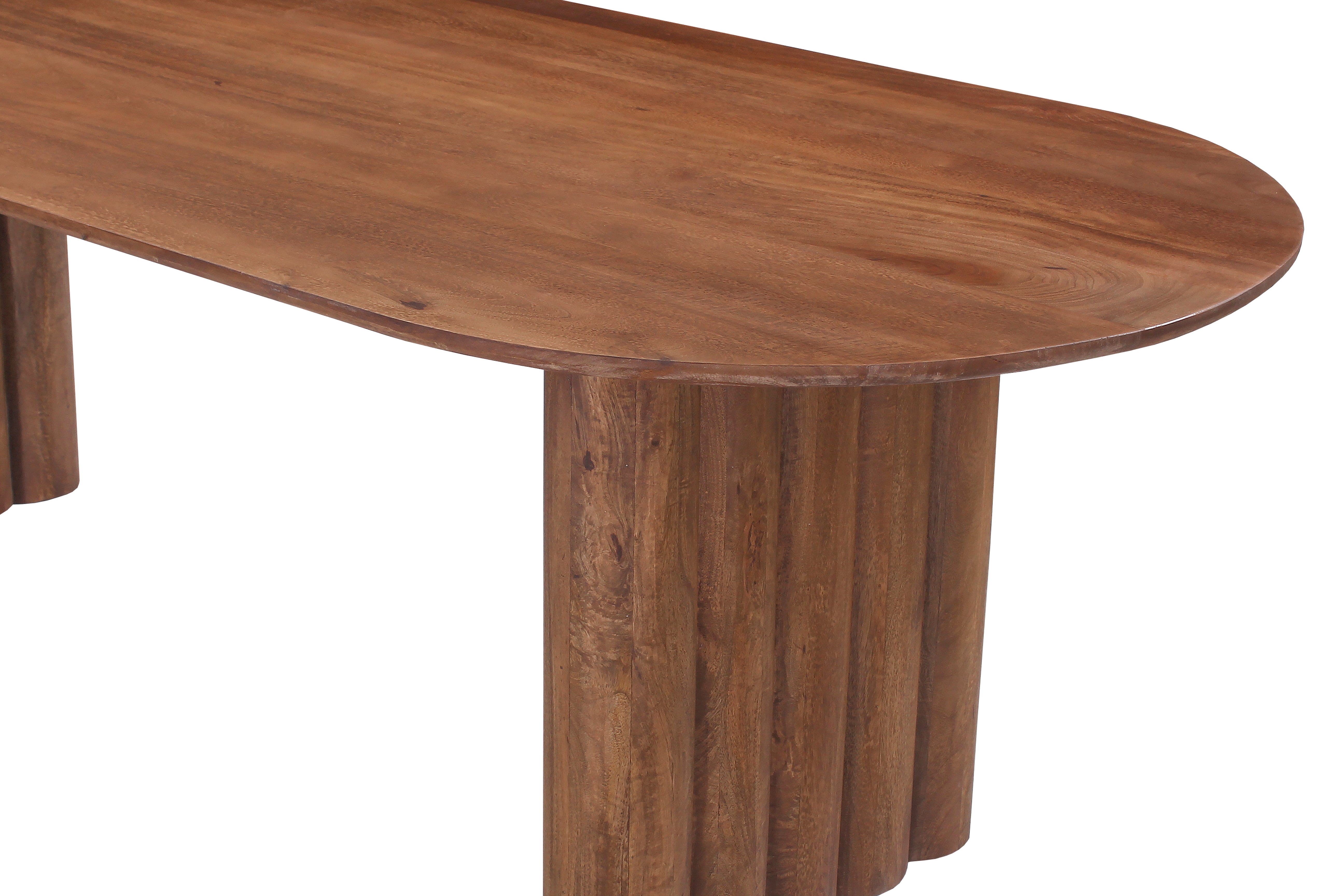 La table à manger Jala déploie une silhouette douce et équilibrée, portée par un plateau ovale qui invite à partager des moments simples et chaleureux. Sa teinte marron clair révèle des nuances délicates, animées par le grain naturel du manguier massif, une essence réputée pour sa robustesse et sa chaleur visuelle. Façonnée artisanalement, elle s’intègre dans les intérieurs contemporains comme dans les espaces plus intimistes. Sa présence est apaisée mais affirmée, un meuble qui structure une pièce avec élégance sans jamais l’alourdir. Le plateau, subtilement adouci, capte la lumière et lui donne de la profondeur, tandis que les pieds massifs assurent une stabilité rassurante. Grâce à son traitement anti-taches, Jala accompagne le quotidien sans crainte des aléas : repas, rires, verres posés à la hâte. Sa surface reste belle, facile à vivre, pensée pour durer au fil des années. Dans une salle à manger, une cuisine ouverte ou un grand séjour, Jala devient le cœur du foyer, la pièce autour de laquelle tout se rassemble et se raconte. Chaque table est unique, les nuances du bois et certains détails peuvent varier légèrement et apportent le charme authentique du travail fait main.