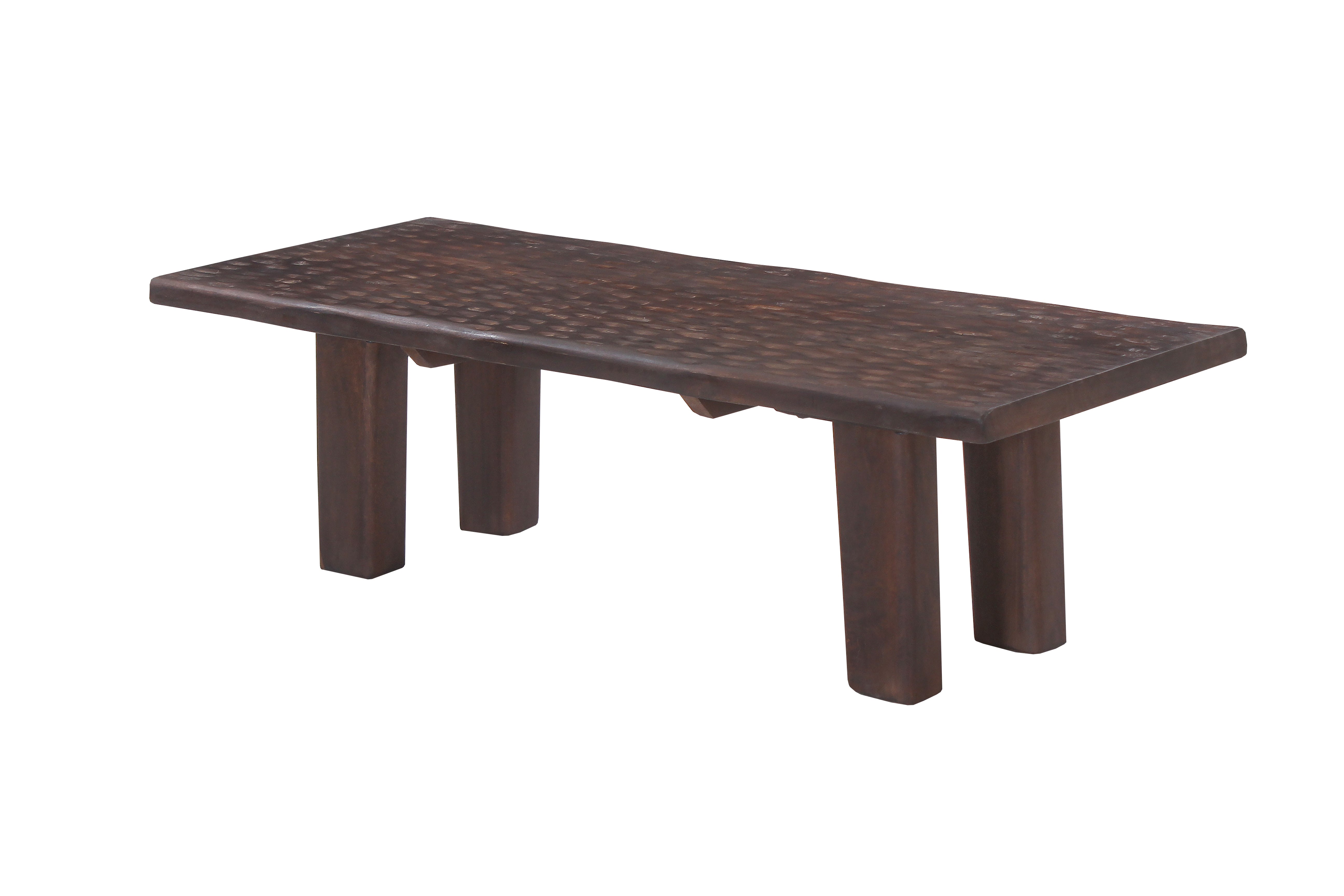 La table basse Rava s’impose avec une élégance brute, comme un meuble chargé d’histoire qui aurait voyagé à travers les terres d’Asie. Inspirée des tables Naga, elle reprend cette présence profonde et authentique, avec un plateau légèrement irrégulier qui porte les traces du bois massif travaillé à la main. Sa teinte marron foncé révèle de subtiles nuances lorsqu’elle attrape la lumière. Le grain du bois apparaît par endroits, donnant l’impression que la matière respire encore. Au toucher, on sent le relief discret et la chaleur du manguier, cette texture qui donne envie de poser la main avant même de s’installer dans la pièce. Portée par quatre pieds robustes et droits, Rava semble ancrée, stable, presque architecturale. Sa silhouette longiligne s’intègre aussi bien dans un salon contemporain que dans un intérieur plus bohème ou minimaliste. Elle apporte une profondeur, un caractère, une forme de sérénité visuelle qui transforme l’espace autour d’elle. Chaque pièce est unique, et les légères irrégularités ne sont pas des imperfections mais la signature de l’artisanat, la marque d’un meuble façonné lentement, avec intention. Une table pensée pour ceux qui aiment les intérieurs qui racontent, qui vivent, qui invitent.