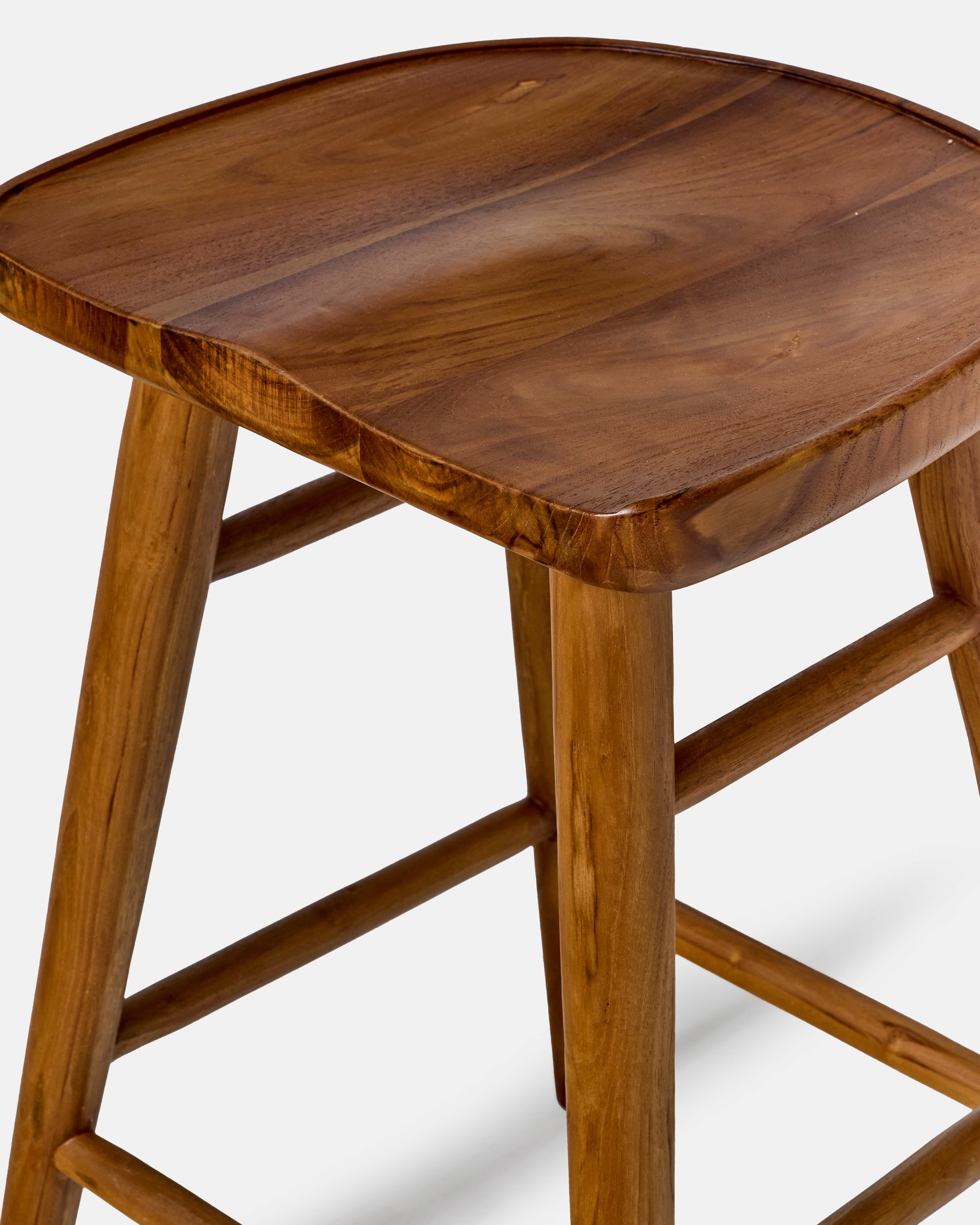 Le teck naturel révèle ici toute sa noblesse, un bois dense et chaleureux, dont les nuances dorées se subliment avec le temps. Sa silhouette, fine et solide, lui confère une allure intemporelle, parfaite autour d’un îlot, d’un comptoir ou en pièce d’accent dans un intérieur raffiné.