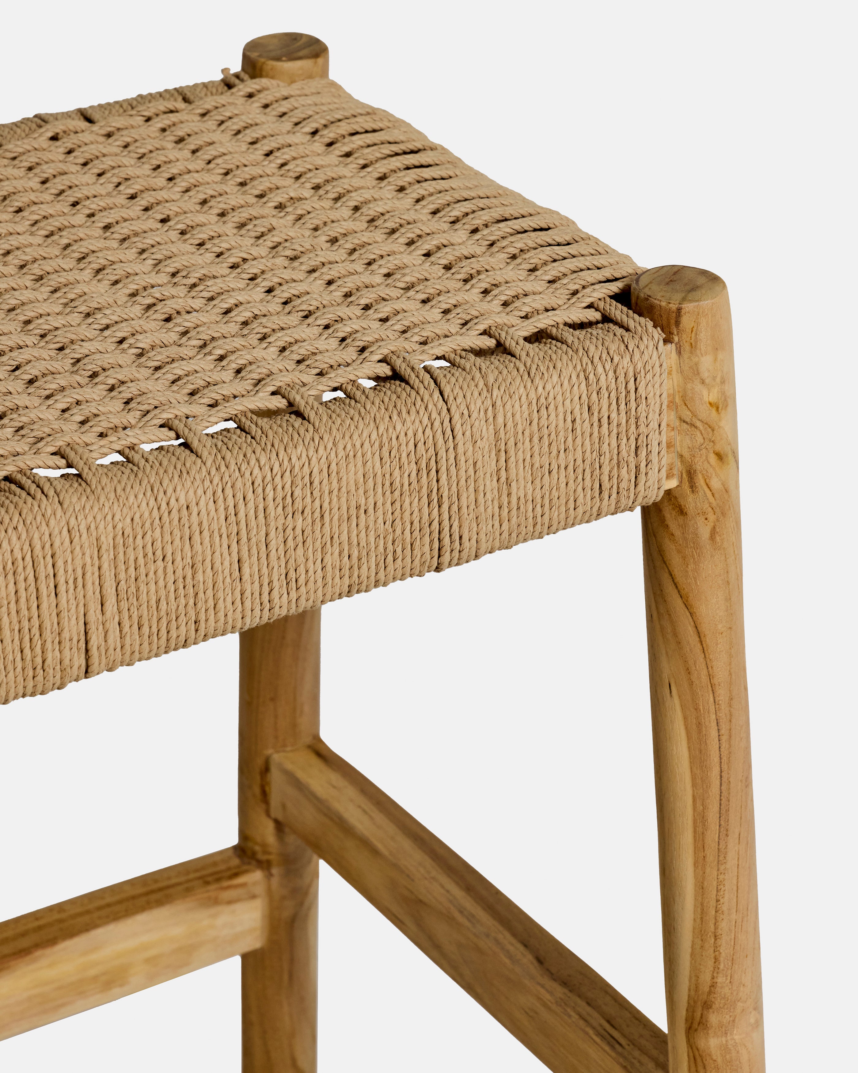 Le Tabouret Tali incarne l’essence même du design naturel, une alliance subtile entre bois de teck massif et corde tressée à la main. Chaque pièce est unique, façonnée par des artisans passionnés qui perpétuent un savoir-faire authentique.