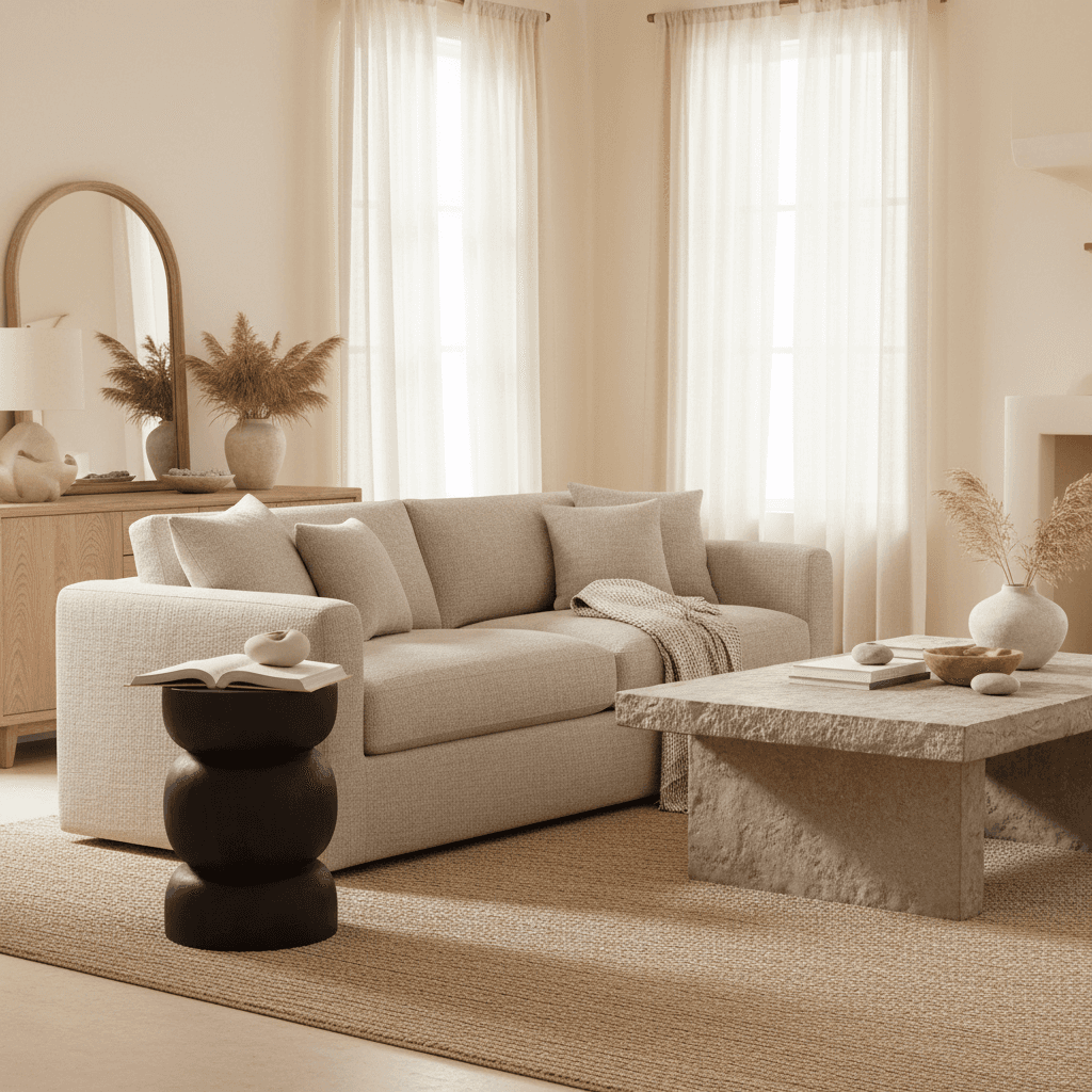 Dans un salon, près d'un canapé ou en guise de chevet, le tabouret Prana s'intègre avec une grande facilité grâce à son dessin plein et arrondi. Le bois de manguier massif lui donne un caractère franc, enrichi par des nuances naturelles et de légères irrégularités qui rappellent le travail artisanal. Sa finition marron foncé, subtilement satinée, souligne les volumes sans alourdir l'ensemble et permet de l'associer aussi bien à un décor bohème chic, contemporain qu'à une ambiance plus épurée. Ce tabouret ne se limite pas à une seule fonction. Il peut accompagner un fauteuil, accueillir un livre près du lit, servir de petite table d'appoint ou compléter un coin lecture avec discrétion. Son format simple et sa ligne presque sculptée en font une pièce facile à déplacer au fil des besoins, tout en conservant une vraie tenue visuelle dans l'espace. Chaque exemplaire présente ainsi de légères variations, liées à la matière et à la fabrication artisanale indienne, ce qui renforce l'intérêt de cette assise d'appoint au dessin singulier.