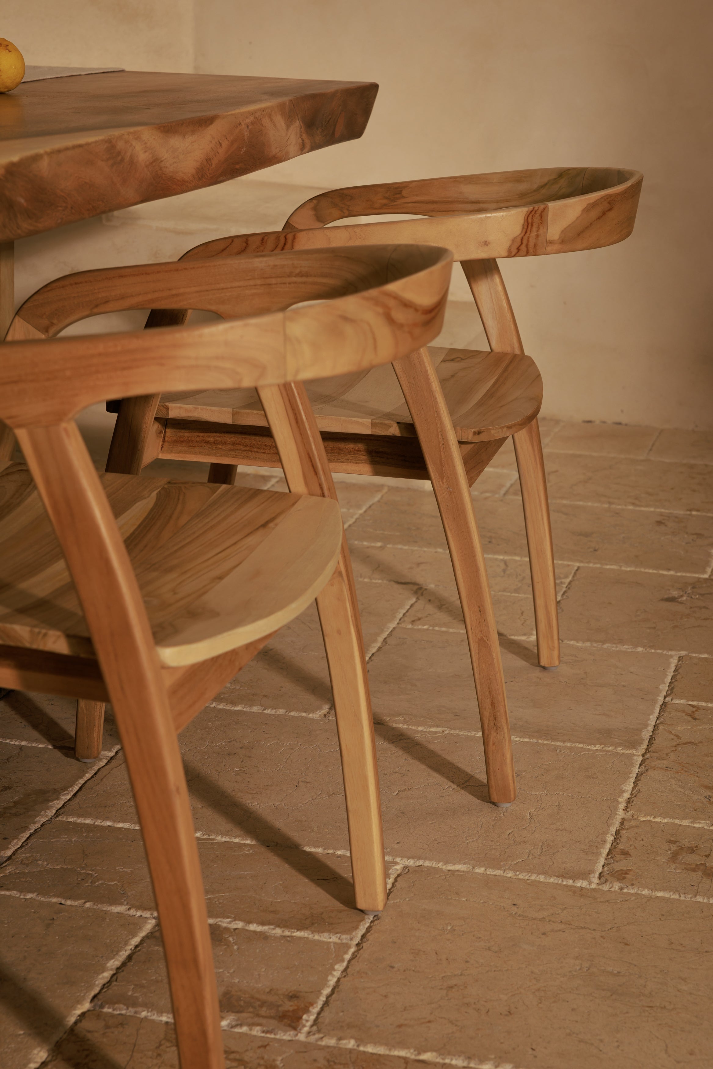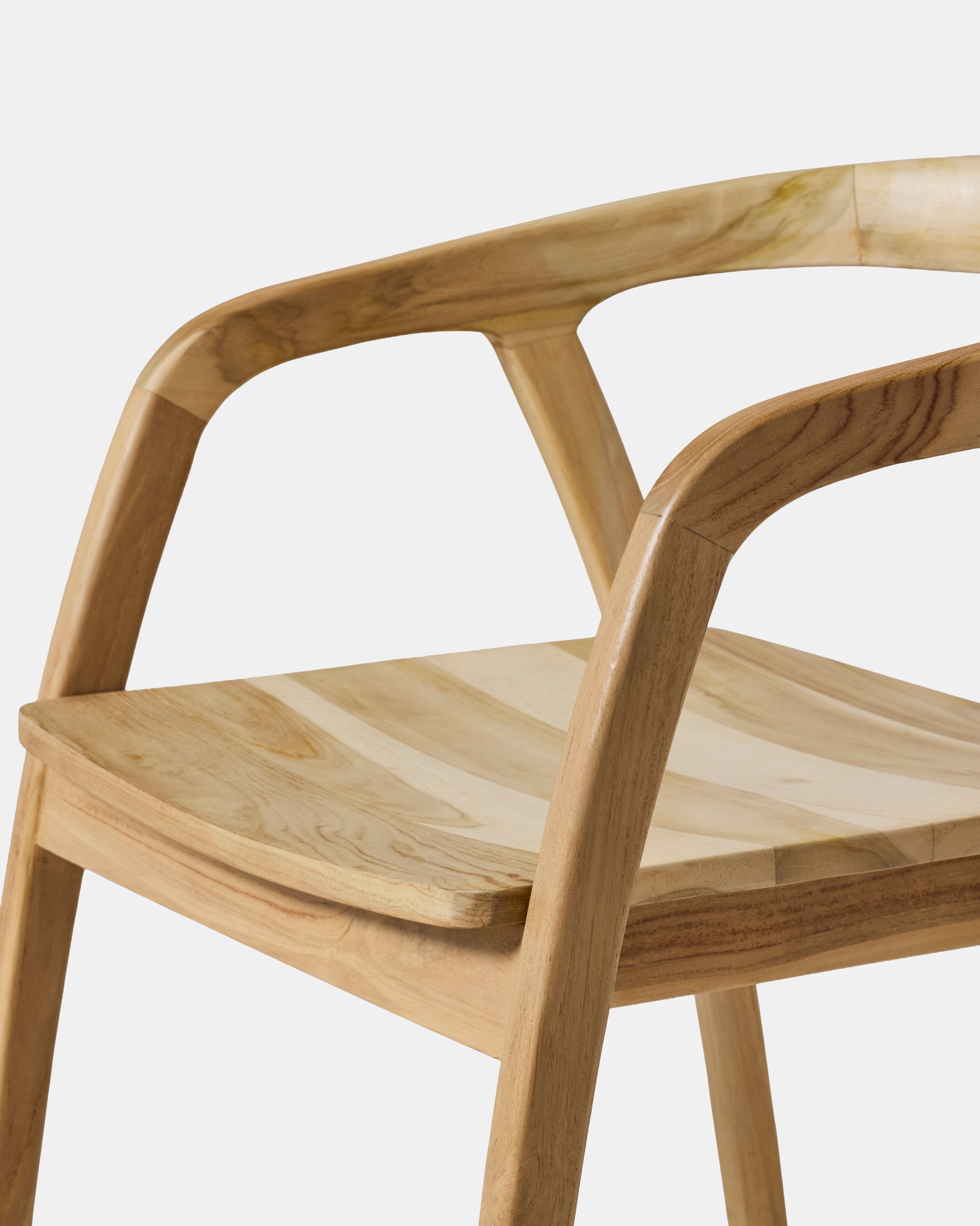 La chaise Vano Bright met en valeur toute la noblesse du teck massif à travers une forme fluide et épurée. Le bois, dense et lisse au toucher, révèle ses veines naturelles et une teinte claire qui apporte de la lumière à l’espace. L’assise en teck offre un soutien ferme et équilibré, idéal pour un usage quotidien autour d’une table ou dans un espace de travail. Chaque courbe est façonnée pour offrir un confort juste, où la matière devient la vraie signature de la chaise.