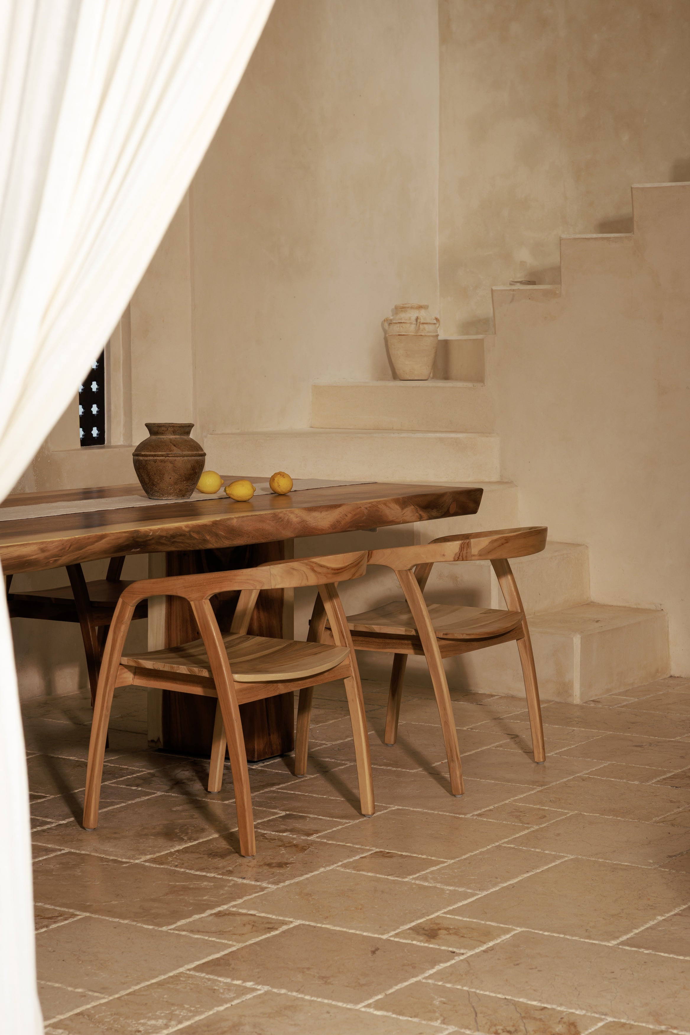 La chaise Vano Bright incarne une vision lumineuse et équilibrée du mobilier en bois, où le teck naturel révèle toute sa noblesse à travers des lignes fluides et une silhouette épurée. Façonnée artisanalement en Indonésie, elle laisse apparaître les nuances dorées et le grain vivant du bois, apportant à l’espace une chaleur douce et une sensation de calme. Son assise confortable et ses proportions justes en font une pièce idéale autour d’une table, dans un bureau ou dans un coin lounge, où elle accompagne les moments du quotidien avec élégance et simplicité. Vano Bright dialogue naturellement avec les matières minérales, les murs clairs et les textiles bruts, créant une atmosphère à la fois contemporaine et intemporelle, pensée pour des intérieurs qui aiment la lumière, la matière et les objets qui traversent le temps.