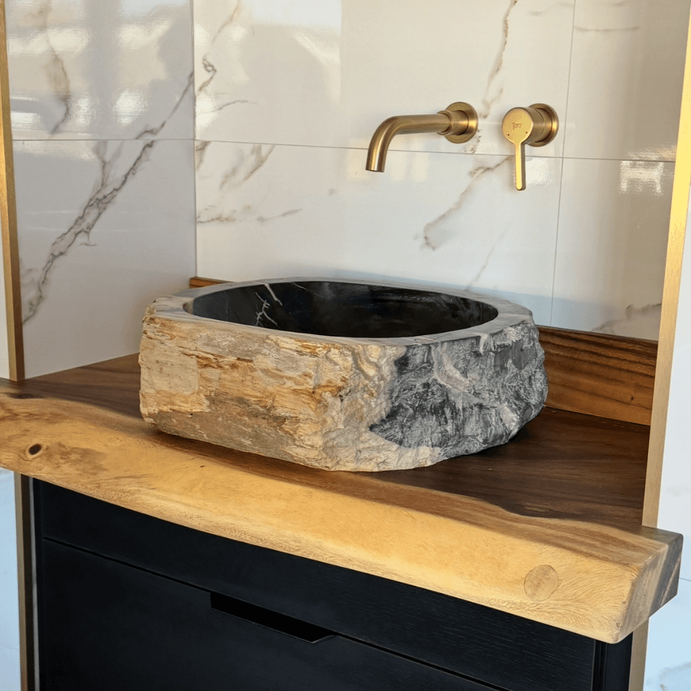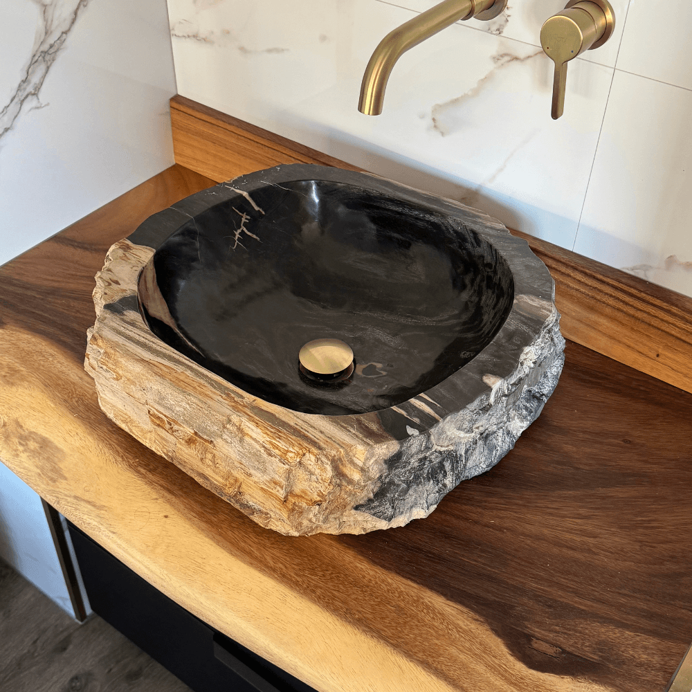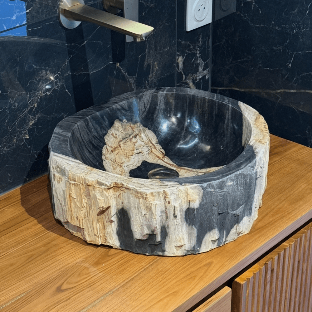 Vasque de salle de bain en bois fossilisé