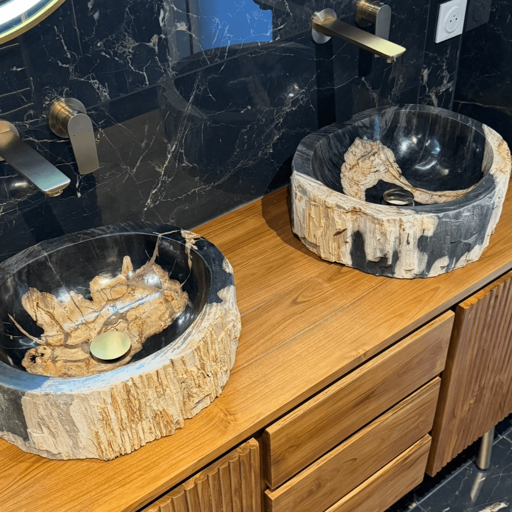 Sculptée dans un tronc de bois fossilisé âgé de millions d’années, cette vasque d’exception apporte à votre salle de bain une élégance brute et rare. Chaque pièce révèle un veinage unique, des teintes profondes et des formes organiques qui font de votre vasque une œuvre naturelle singulière. Entre modernité et mystère minéral, elle transforme l’espace en un lieu raffiné et authentique.